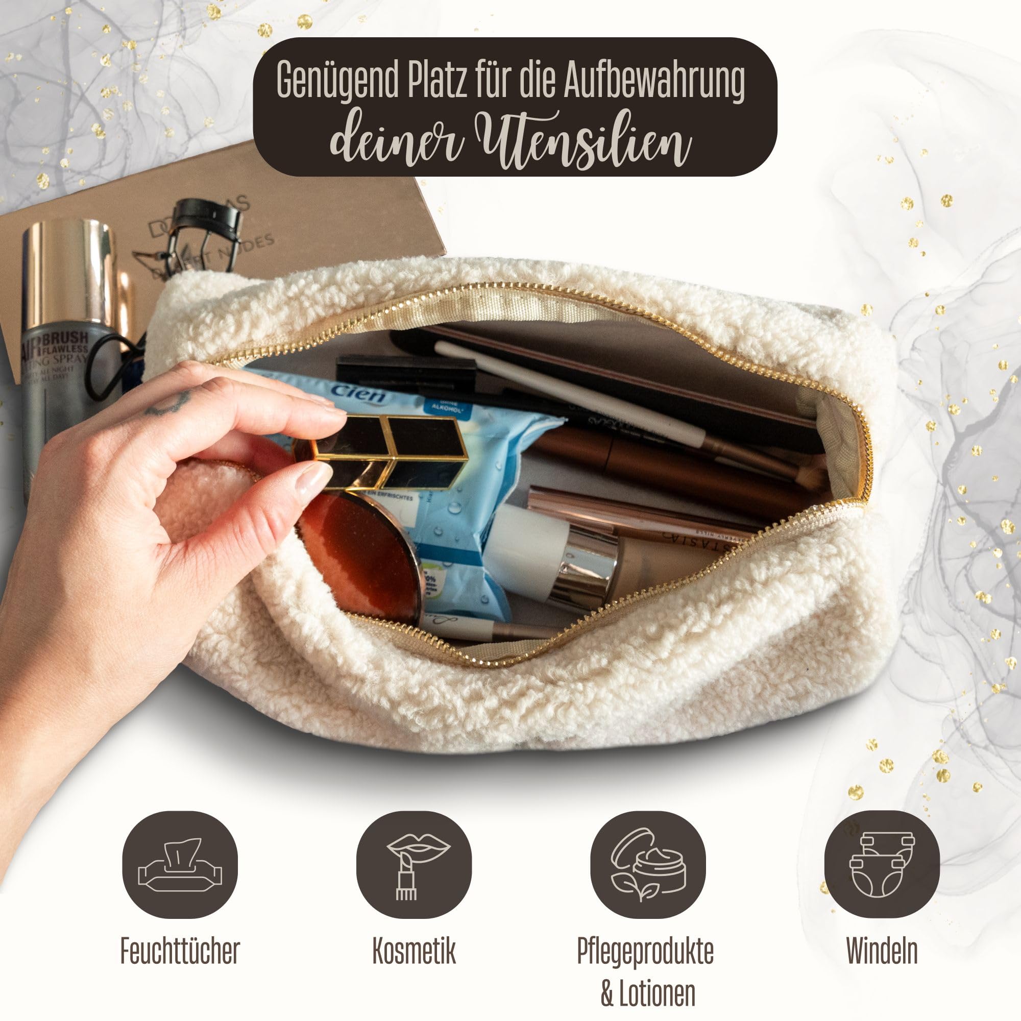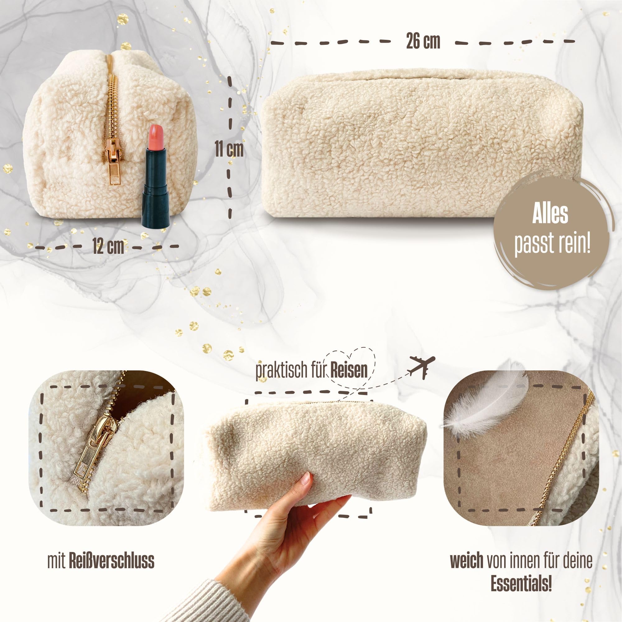 • Hochwertiges Material & weiches Plüschdesign – Das strapazierfähige Plüschmaterial fühlt sich angenehm an, schützt den Inhalt und verleiht der Kosmetiktasche einen charmanten, stylischen Look.