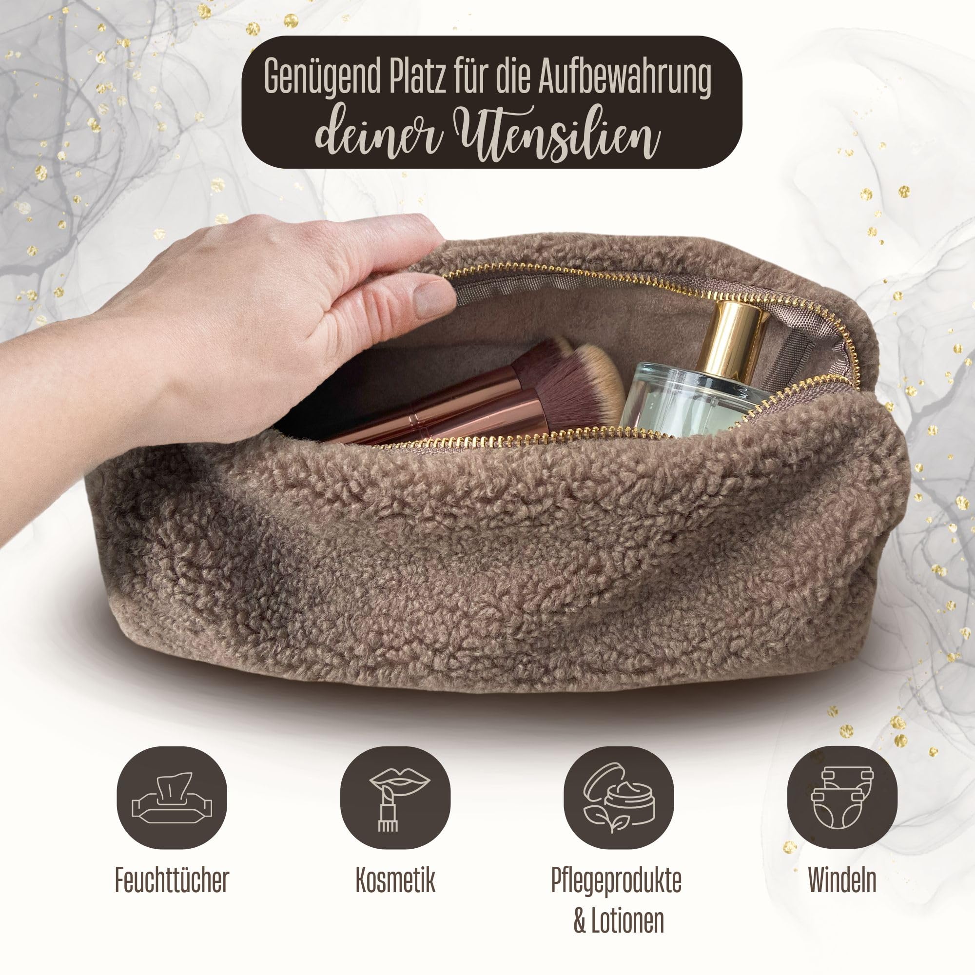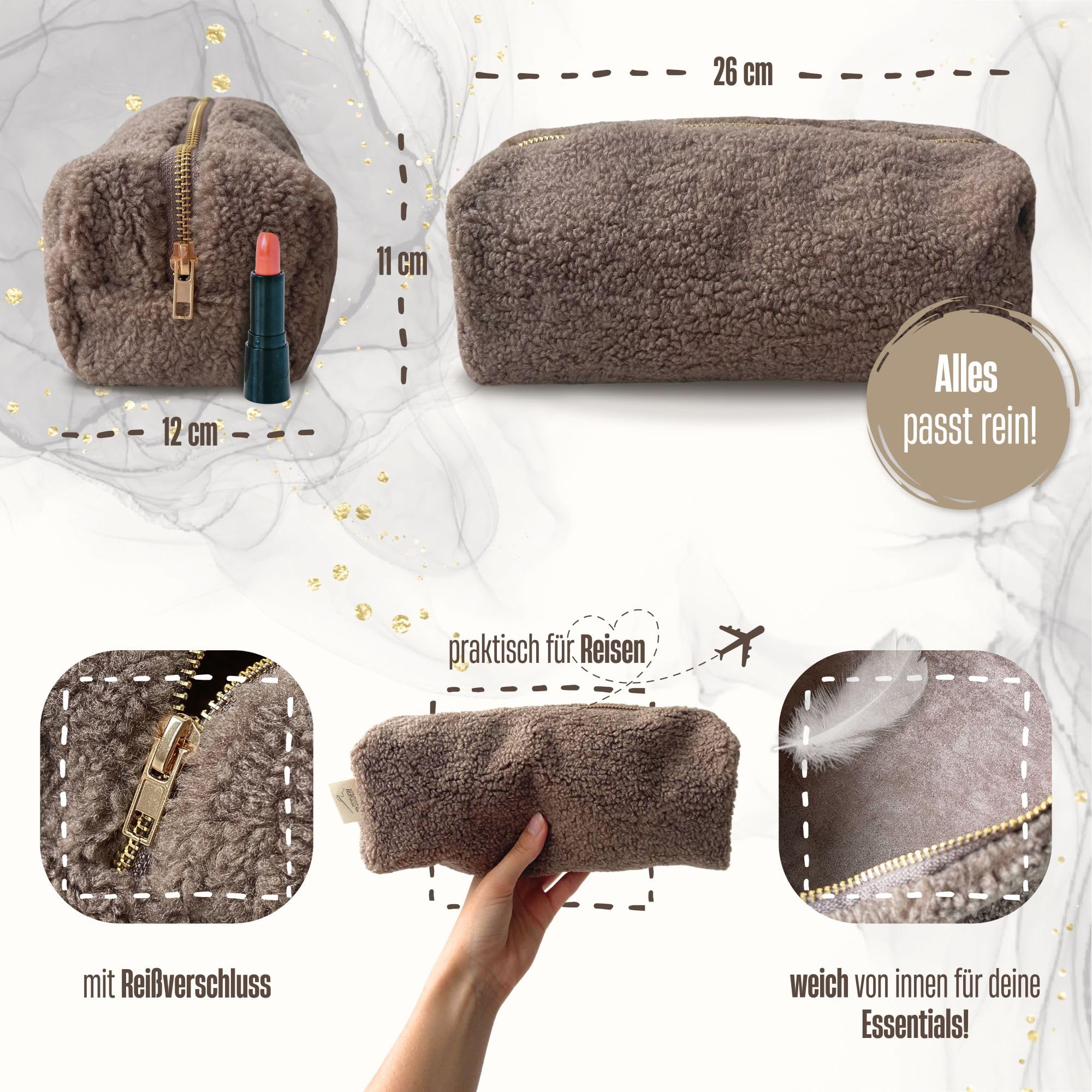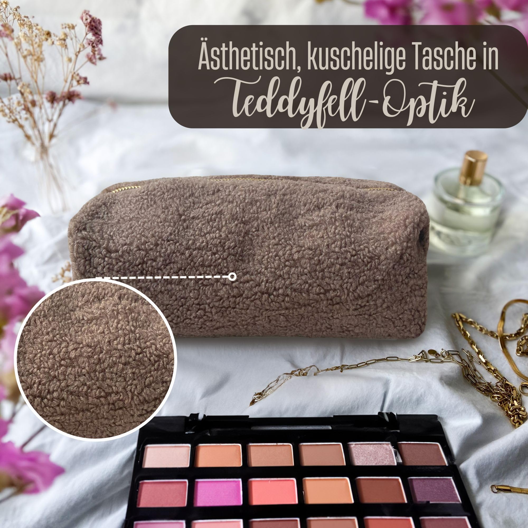Teddy Kosmetiktasche – Plüsch Schminktasche, ideal als Organizer für die Handtasche (Braun)