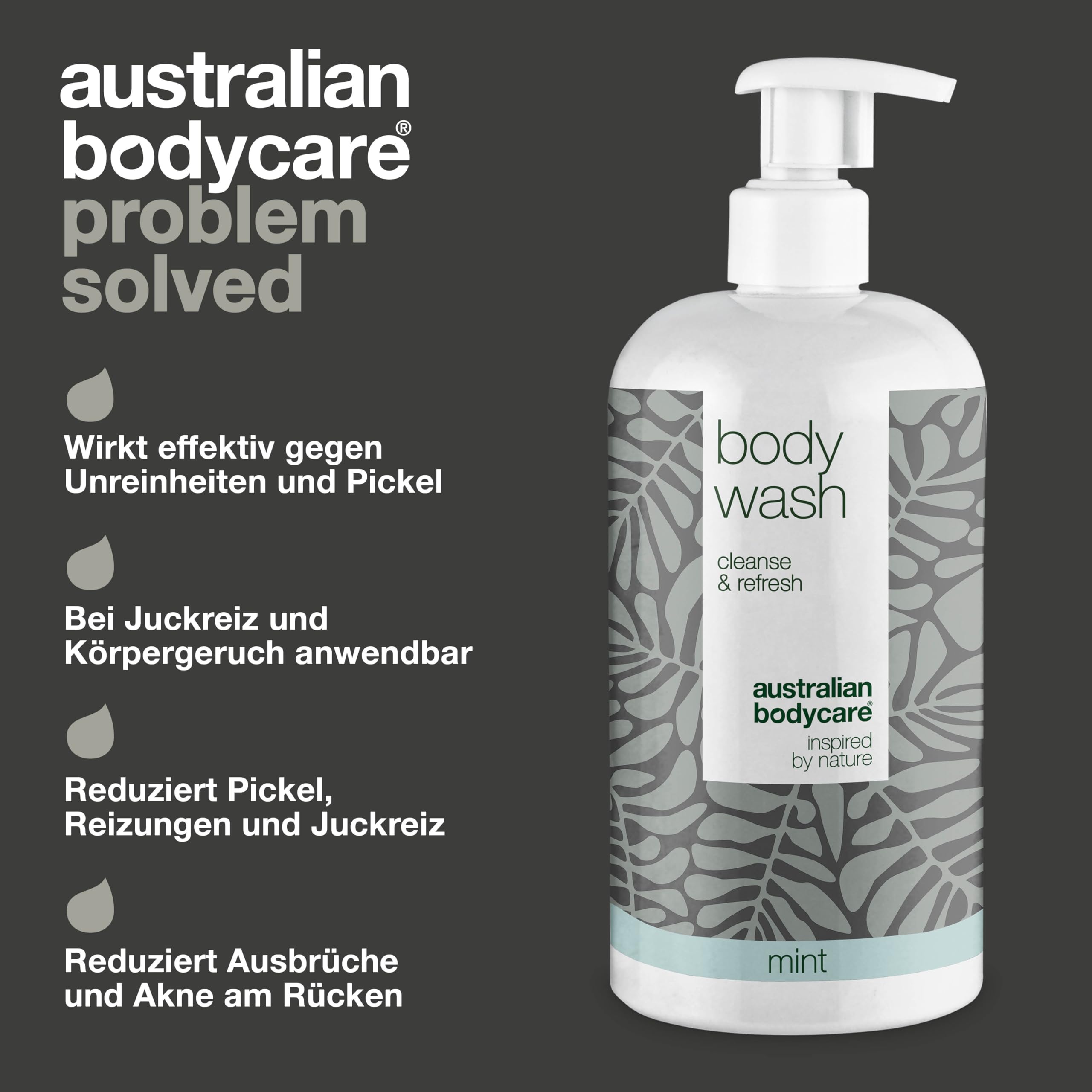 Australian Bodycare Minze Teebaumöl Duschgel 500 ml – Für Unreine & Trockene Haut, Pickel, Juckreiz & Körpergeruch
