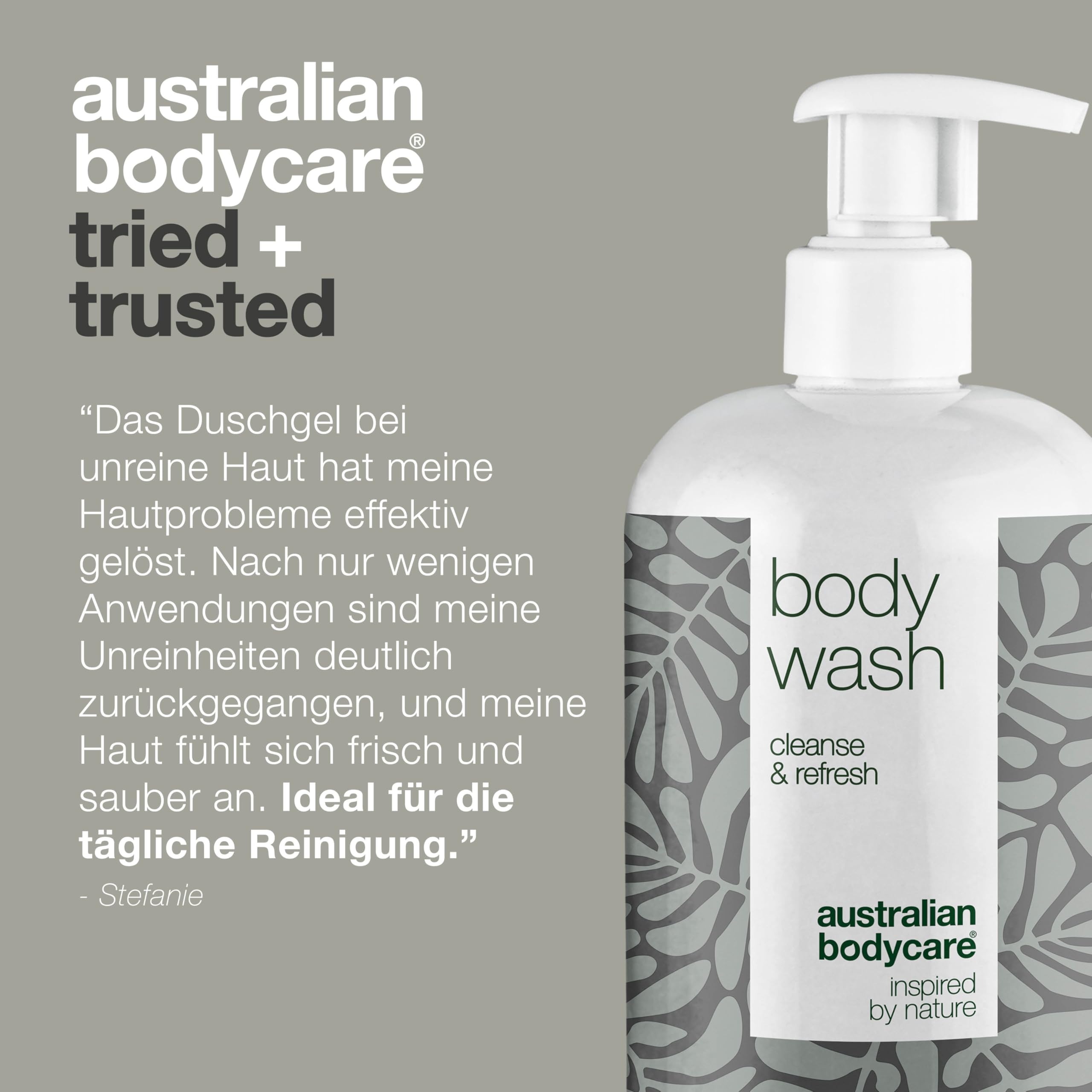 Warum Australian Bodycare Body Wash wählen? Seit 1992 bietet Australian Bodycare natürliche, vegane und dermatologisch getestete Hautpflege, inspiriert von der Natur. Die Produkte liefern effektive Lösungen für unreine, trockene und empfindliche Haut und sorgen für ein sichtbares, gesundes Hautbild.