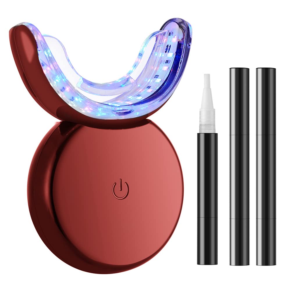 Teeth Whitening Kit, EOSVAP Bleaching Zähne mit 32X LED Licht und 3 Zahnaufhellung Gel, Effektiv Zähne Aufhelle, Zahnaufhellung zu Hause, rot