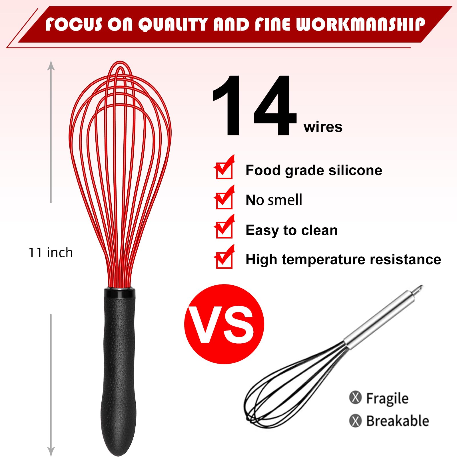 TEEVEA Silikon-Schneebesen, Küchen-Silikon-Schneebesen zum Kochen, kratzfest, Wiking-Werkzeug, Metalldraht, Edelstahl, Schneebesen, Ei, Brot, Silikon, Wisk, kleiner Mini-Schneebesen, hitzebeständig,