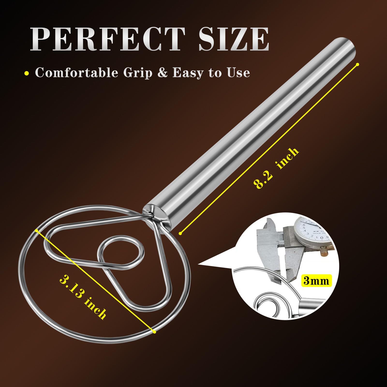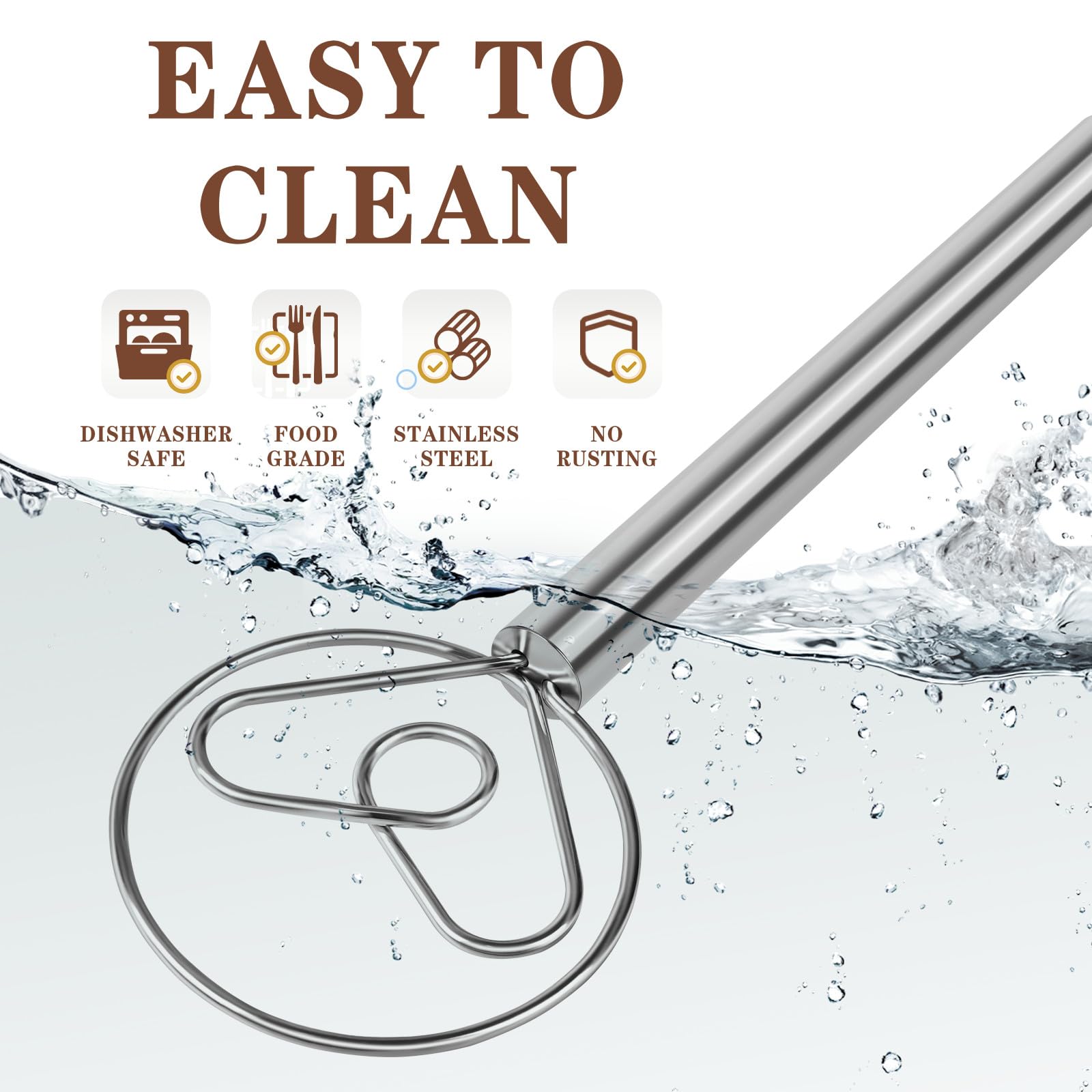 TEEVEA Dänischer Teigbesen mit Edelstahlhaken, Brotmixer im niederländischen Stil, für Sauerteig-Backwerkzeuge