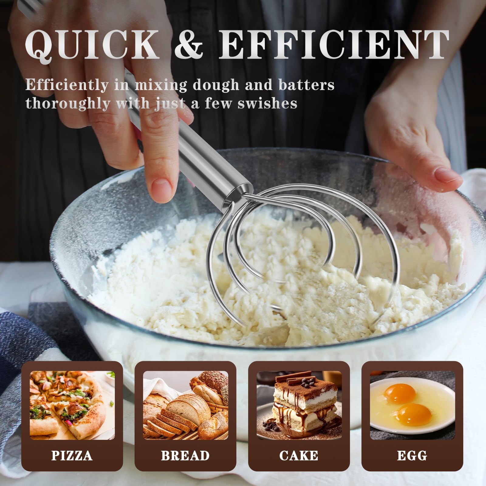 TEEVEA Dänischer Teigbesen – Brotbesen mit Edelstahl-Teighaken – traditioneller niederländischer Schneebesen – Teigmixer & Brotbackwerkzeuge & Sauerteigbrot Backzubehör