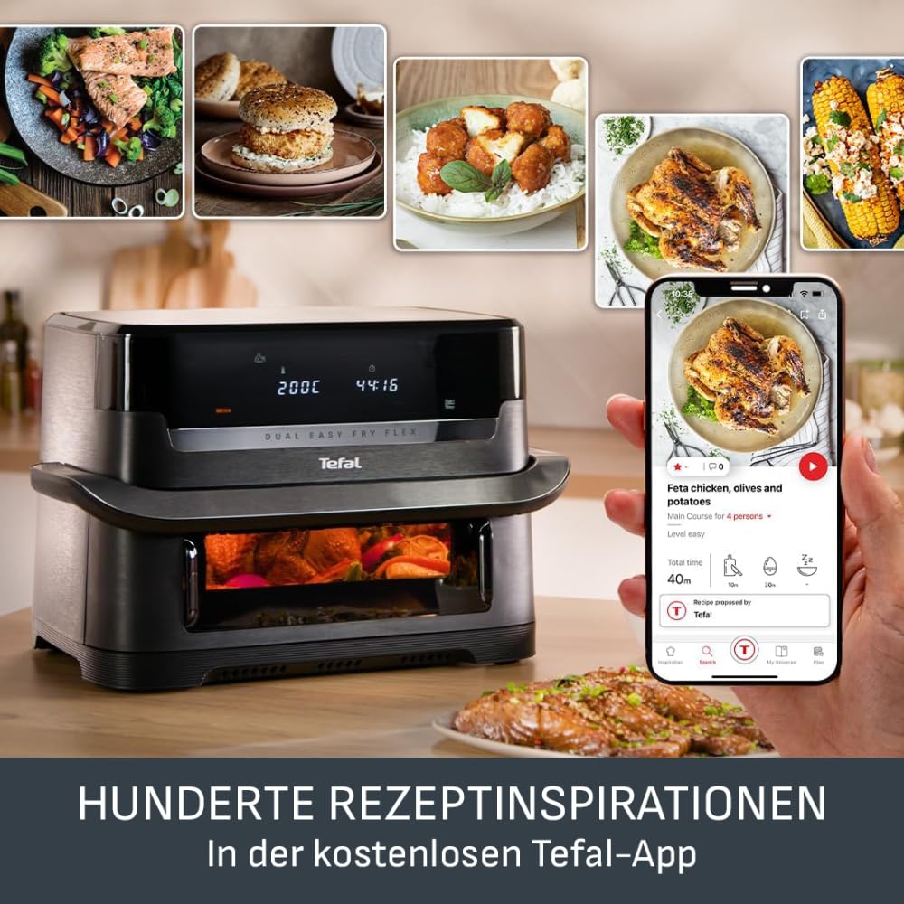 Tefal Dual Easy Fry Flex Heissluftfritteuse 9L – Airfryer mit 2 Kammern & GiantZone, FlexCook-Trennwand, 2700 W, 40–200 °C, 7 Programme, fettarm frittieren & 2 Gerichte gleichzeitig zubereiten EY9228