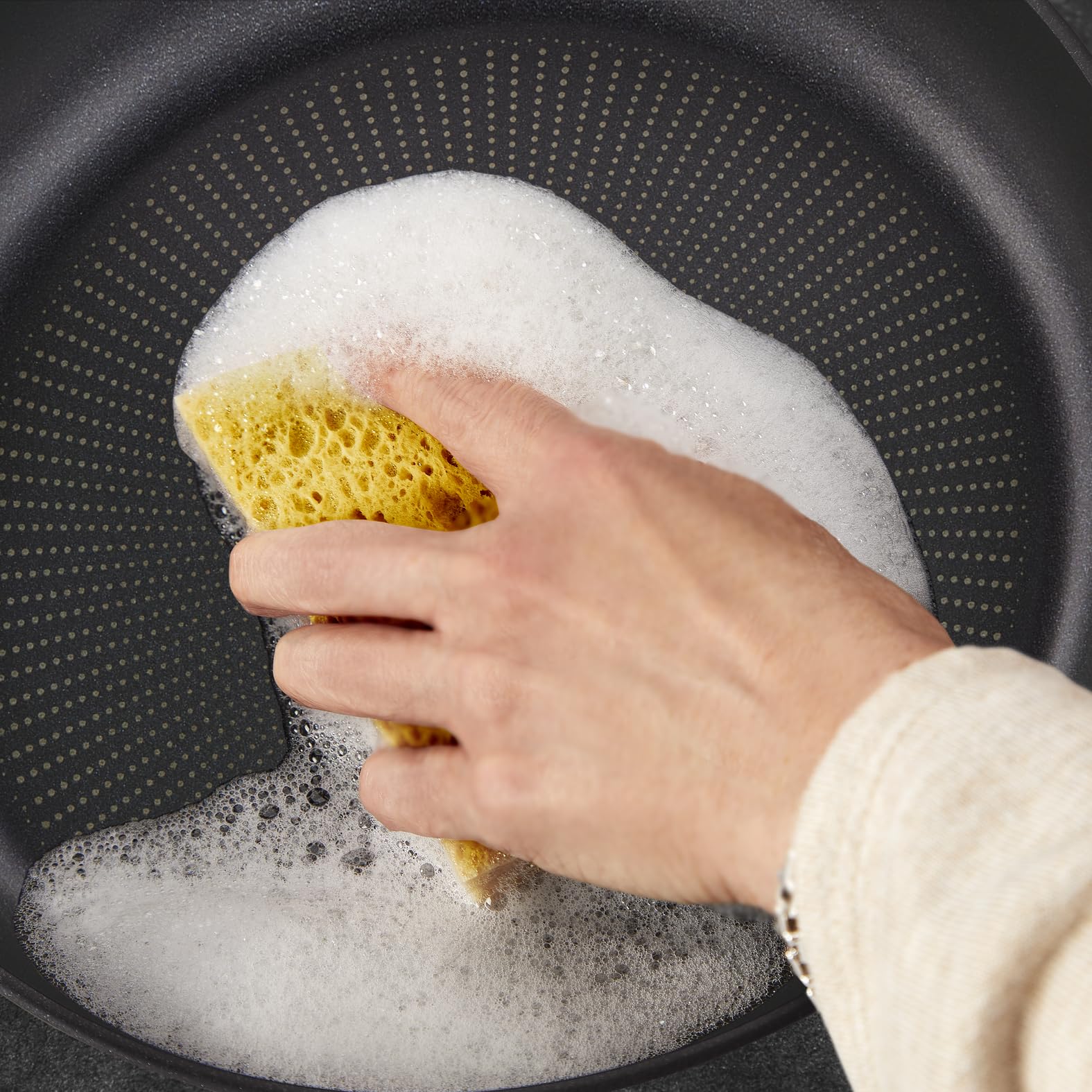 Hard Titanium On Pfannenserie: Entwickelt für eine lange Lebensdauer! Extreme Temperaturschwankungen, Küchenhelfer, scheuernde Reinigung... Kochgeschirr macht im Laufe seines Lebens eine Menge mit. Deshalb hat Tefal sein ganzes Know-how zusammengetragen, um eine Pfanne zu entwickeln, die lange hält: Hard Titanium On. Von sautiertem Gemüse über zarten Fisch bis hin zum perfekt gebratenen Steak - diese Pfanne ist ideal für eine Vielzahl von köstlichen Rezepten geeignet. Ihre Titanium 3x Antihaftversiegelung ist mit Titanpartikeln verstärkt und sorgt so für eine bis zu 3-mal längere Antihaftwirkung im Vergleich zur Tefal-Standardversiegelung. Ausgestattet mit der hochwertigen Thermo-Fusion+ Induktionstechnologie sorgt sie ausserdem für eine schnelle, gleichmässige Wärmeverteilung für gleichmässig gebratene Gerichte auf allen Herdarten. All dies wird mit der Thermo-Signal-Technologie kombiniert, welche die ideale Starttemperatur für perfektes Anbraten und geschmacksintensive Gerichte anzeigt.