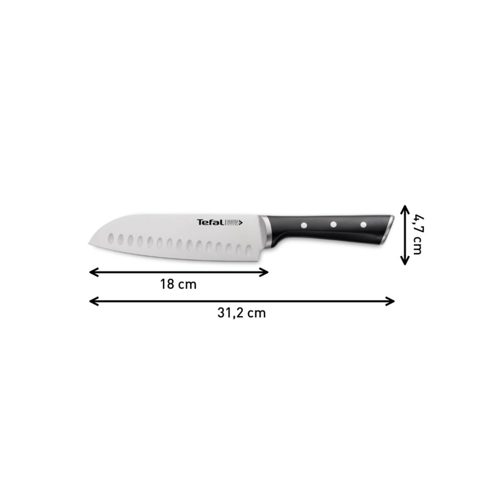 Tefal Ice Force Santoku Messer, 18cm, Korrosionsschutz, Handschutz, Edelstahl, Edelstahl/Schwarz, K23206