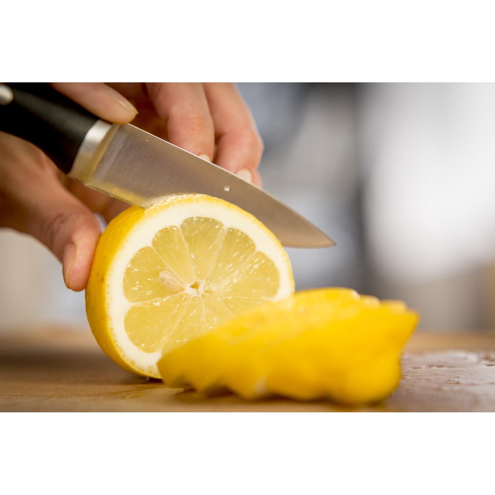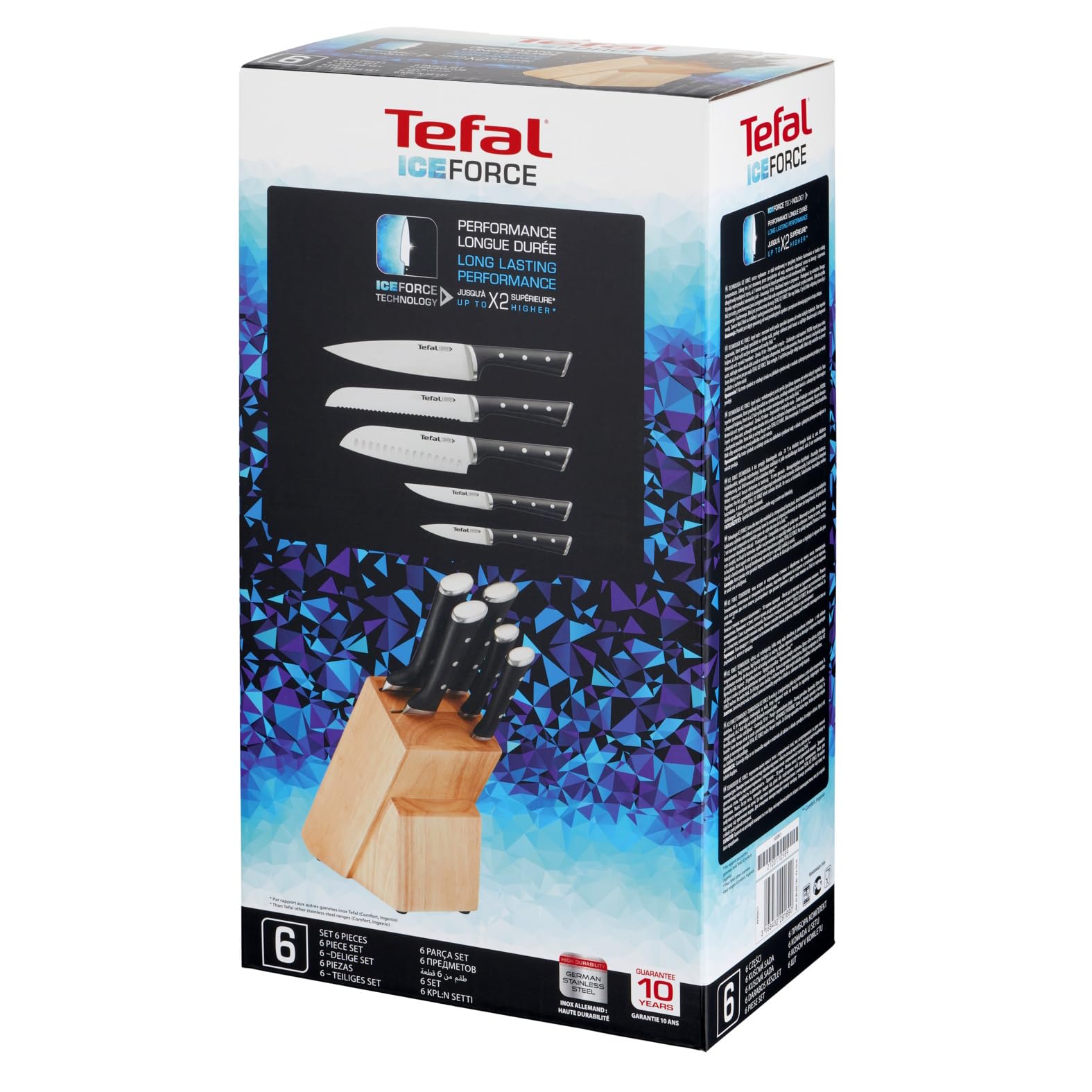 Tefal Ice Force Messerblock aus Holz, 5 Messer, Brotmesser 20 cm, Chefmesser 20 cm, Santokumesser 18 cm, Gemüsemesser 11 cm, Tranchiermesser 9 cm, Edelstahl, braun/schwarz, K232S5