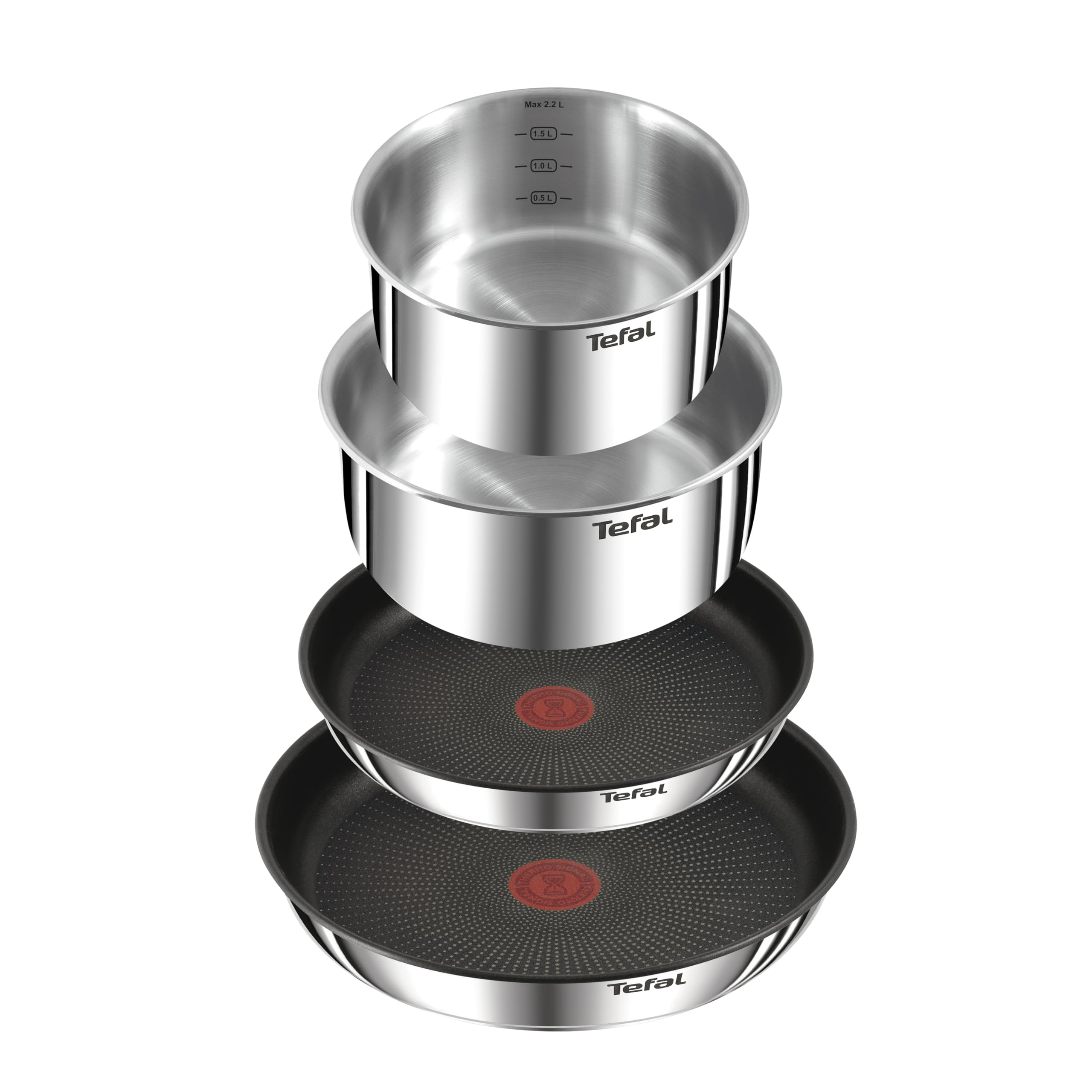 Tefal Ingenio Emotion 5-tlg.Topf und Pfannenset abnehmbarer Griff, stapelbar, platzsparend, Topfset Induktion mit Titanium 2X Antihaftversiegelung, einfache Handhabung und Reinigung, L897S5