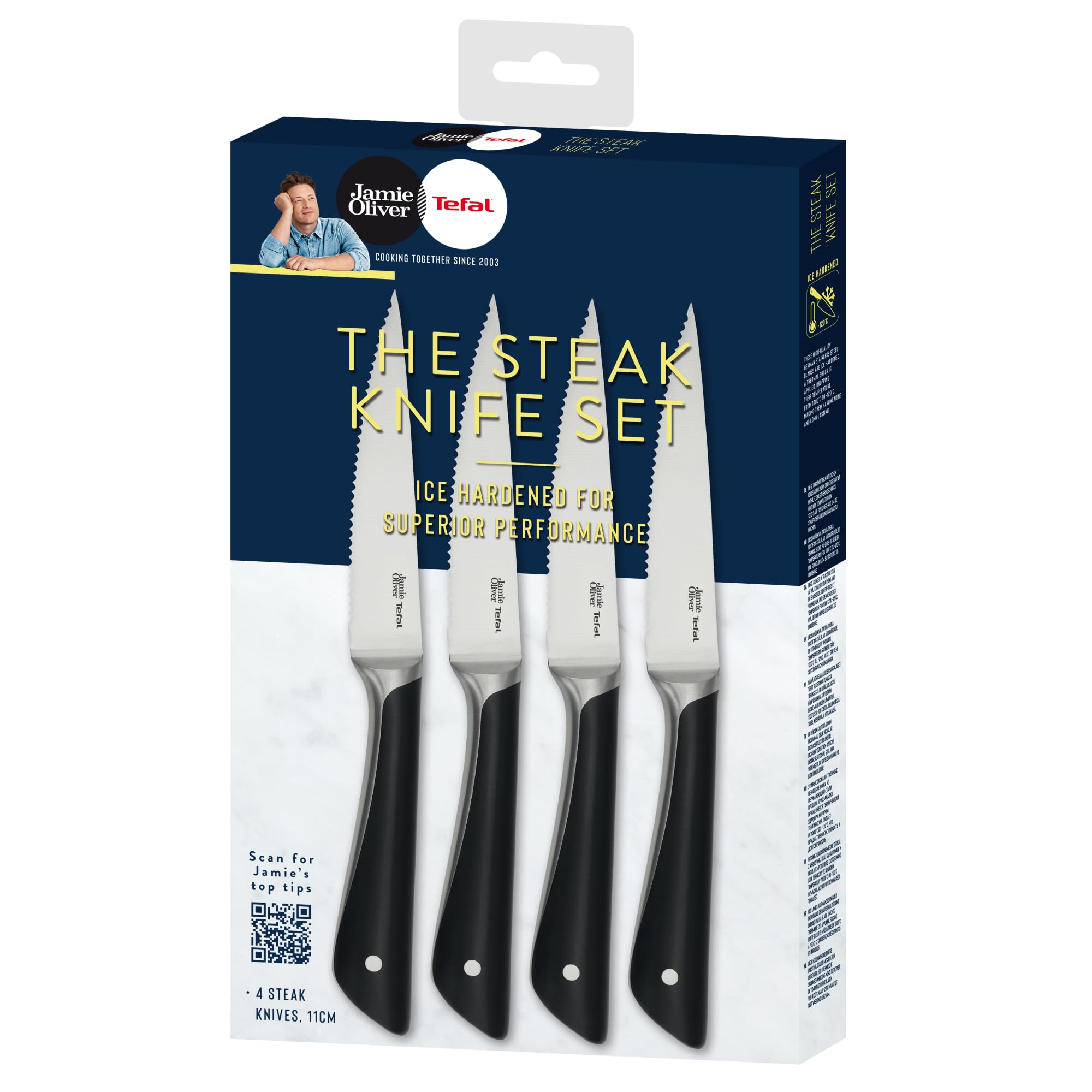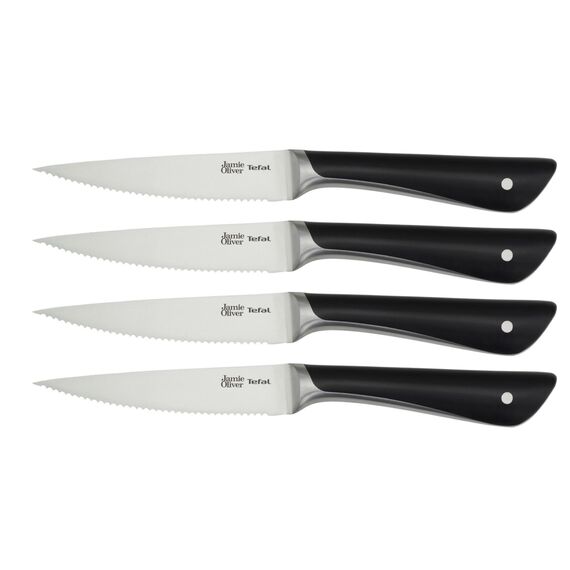 Tefal Jamie Oliver Steakmesser-Set, 4 x 12 cm Messer, deutscher Edelstahl, K2670859, Schwarz