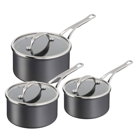 Tefal Jamie Oliver Cook's Classics Kochtopf-Set, 3-teilig, antihaftbeschichtet, 16 & 18 & 20 cm Stielkasserolle mit Deckel, ofenfest, induktionsgeeignet, genieteter Griff, harteloxiertes Aluminium,