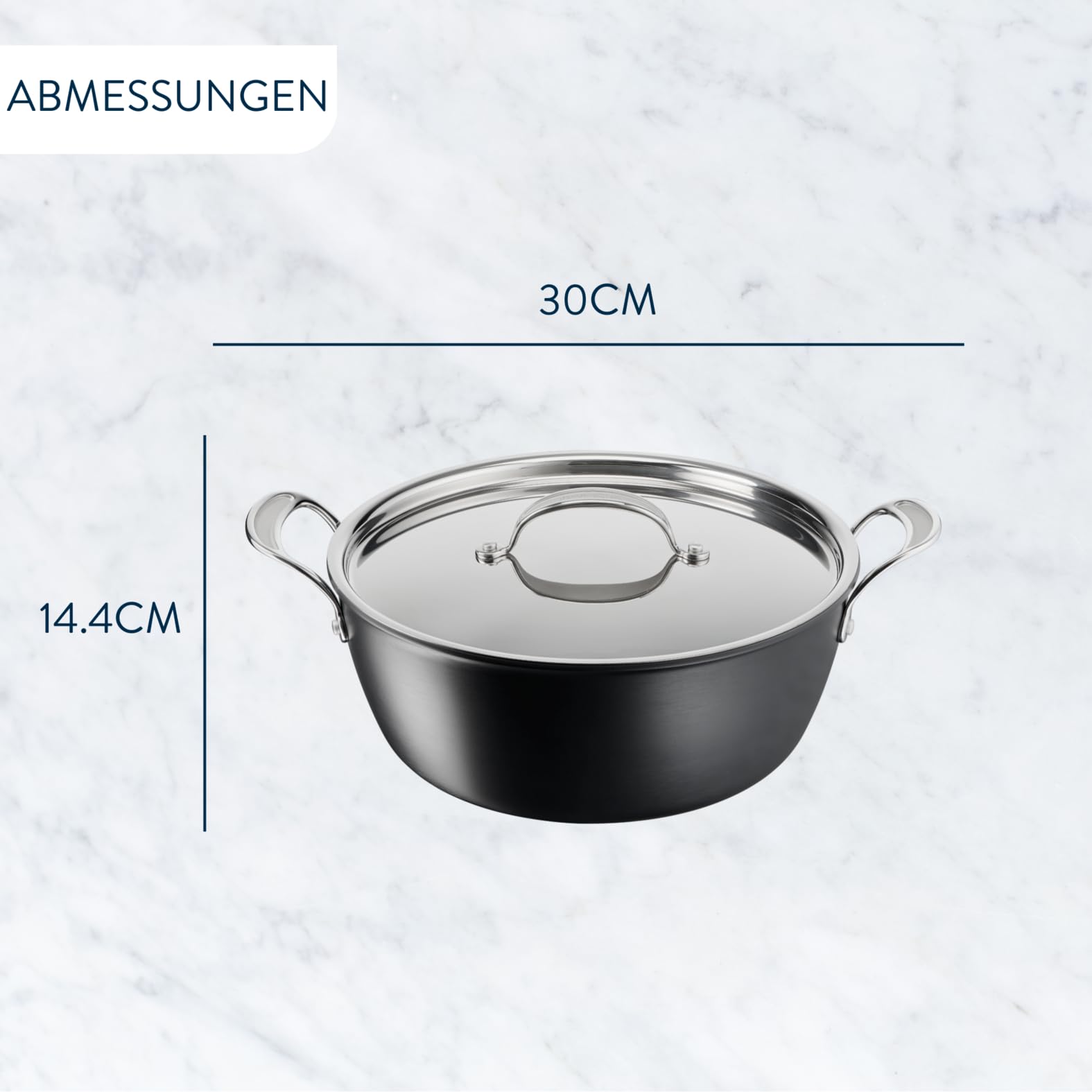 Tefal Jamie Oliver Batch-Cooking Set, Harteloxierter Kochtopf Induktion 30 cm, Antihaftversiegelung, für grosse Mengen, Thermo-Signal bei idealer Brattemperatur, Edelstahl/Schwarz, H91254