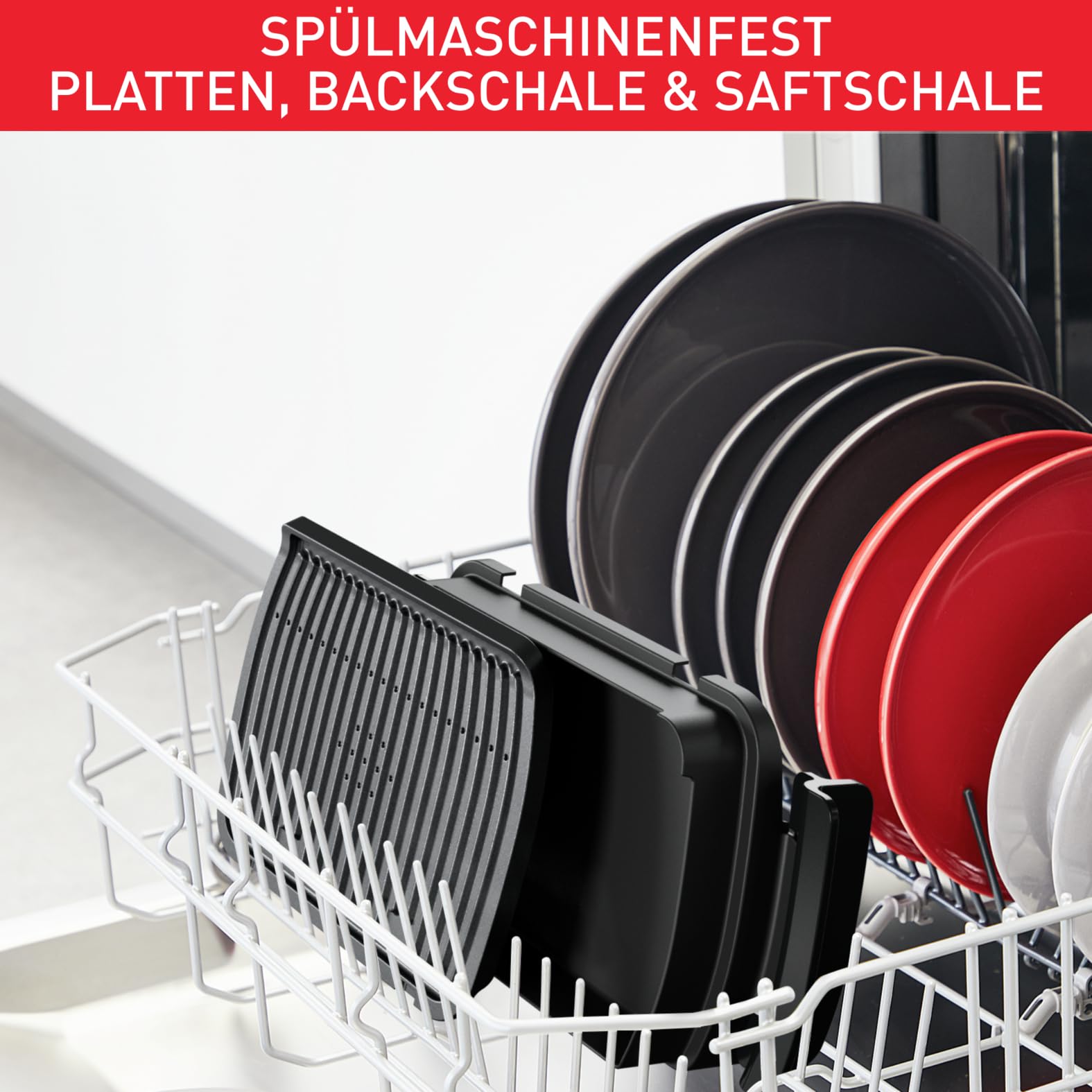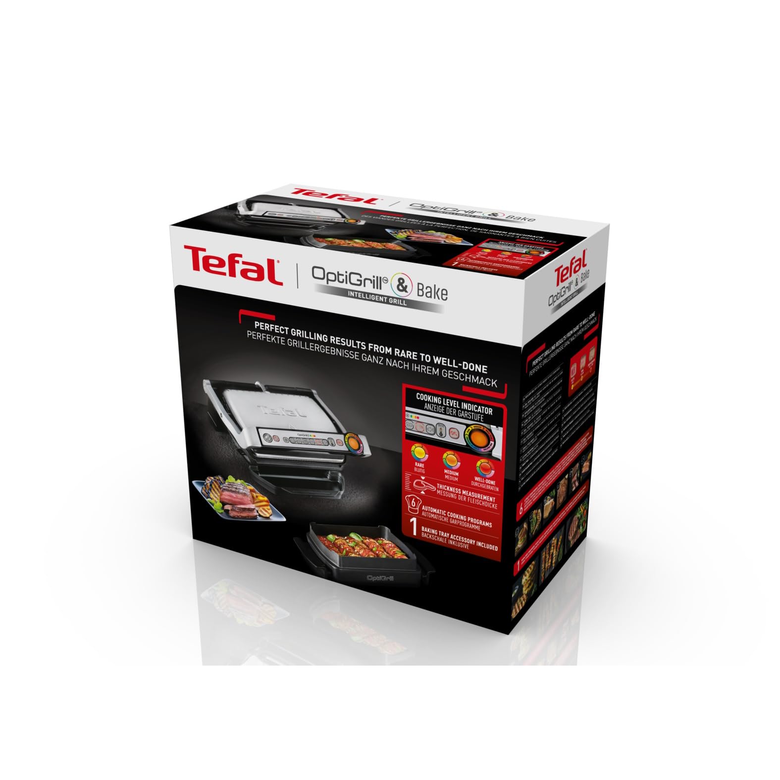 Tefal OptiGrill & Bake Kontaktgrill mit Backschale, 6 Programme, Garstufenanzeige, Abnehmbare Platten, Elektrogrill, Edelstahl, GC714D10