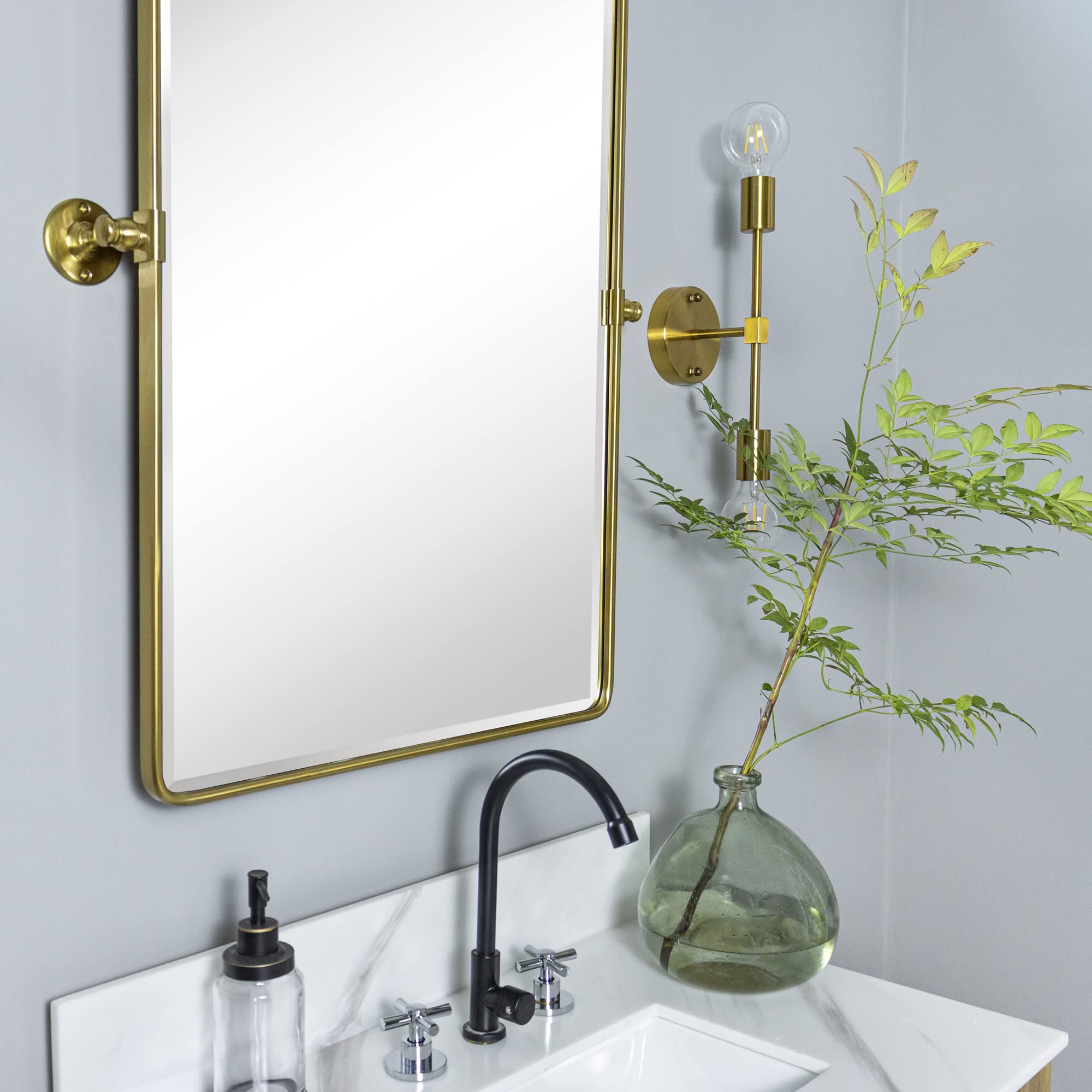 TEHOME 68,9 x 89,9 cm, Gold, Pivot Spiegel, Gebürstet Champagner Gold, Neigen, Rechteck, Badezimmer Spiegel, Schwenkbar, Abgeschrägt, Vanity Spiegel für Wand