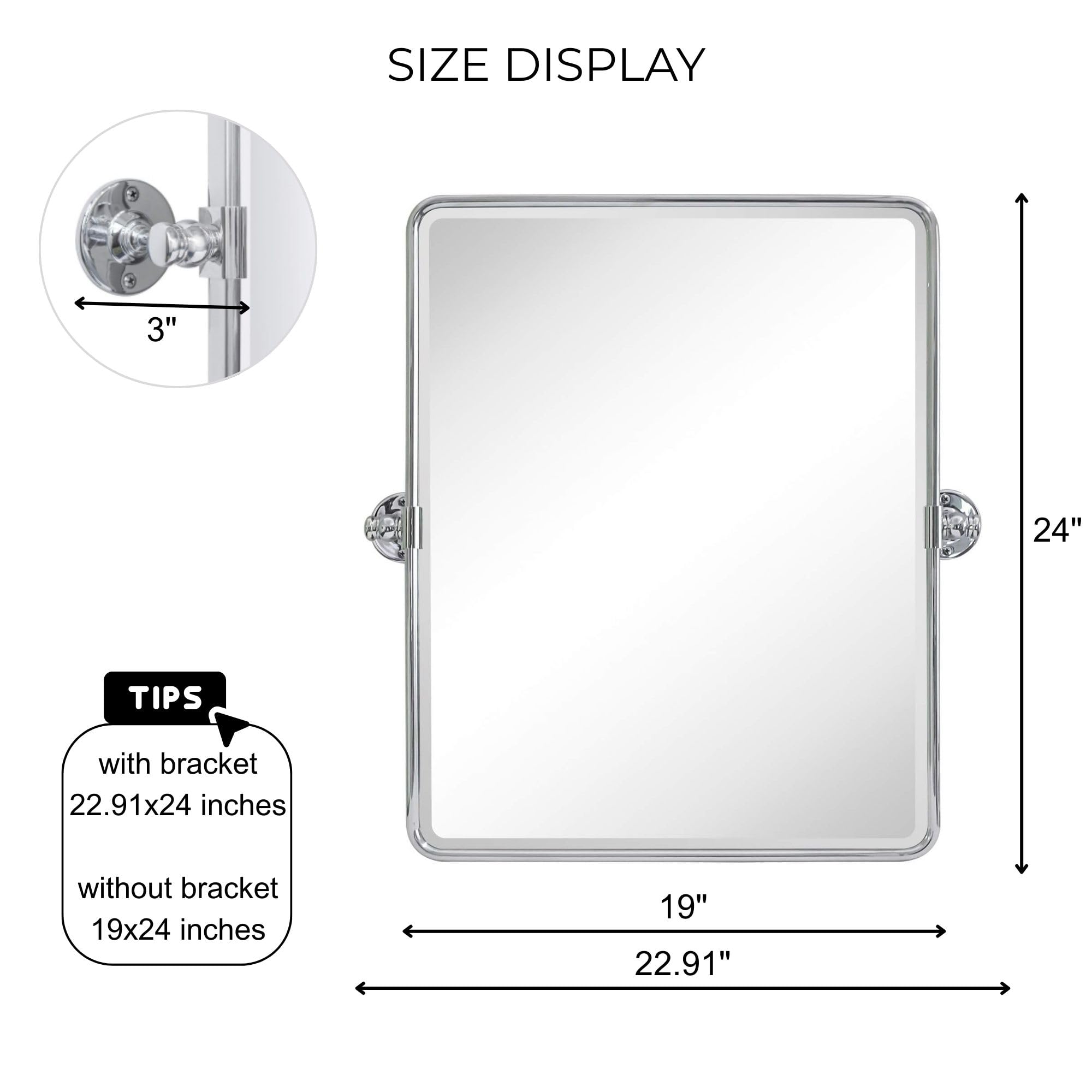 TEHOME 50,8 x 61 cm, Farmhouse, Chrom, Metallrahmen, Pivot, Rechteck, Badezimmer Spiegel, Abgerundete Rechtecke, Schwenkbar, Abgeschrägt, Vanity Spiegel für Wand