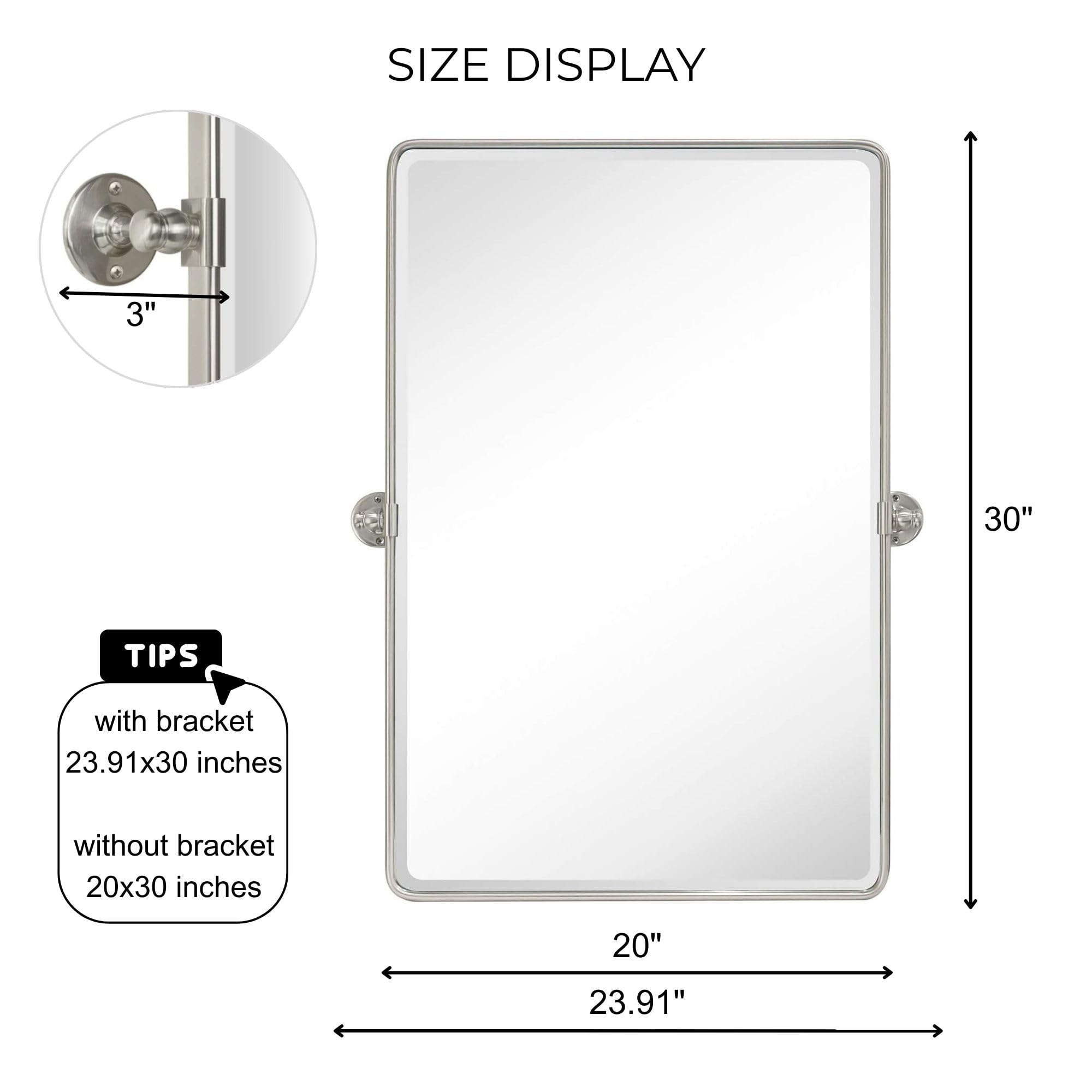 TEHOME 50,8 x 76,2 cm, schwenkbar, rechteckig, gebürstetes Silber, abgerundete Ecke, Metallrahmen, neigbar, abgeschrägt, Wandspiegel