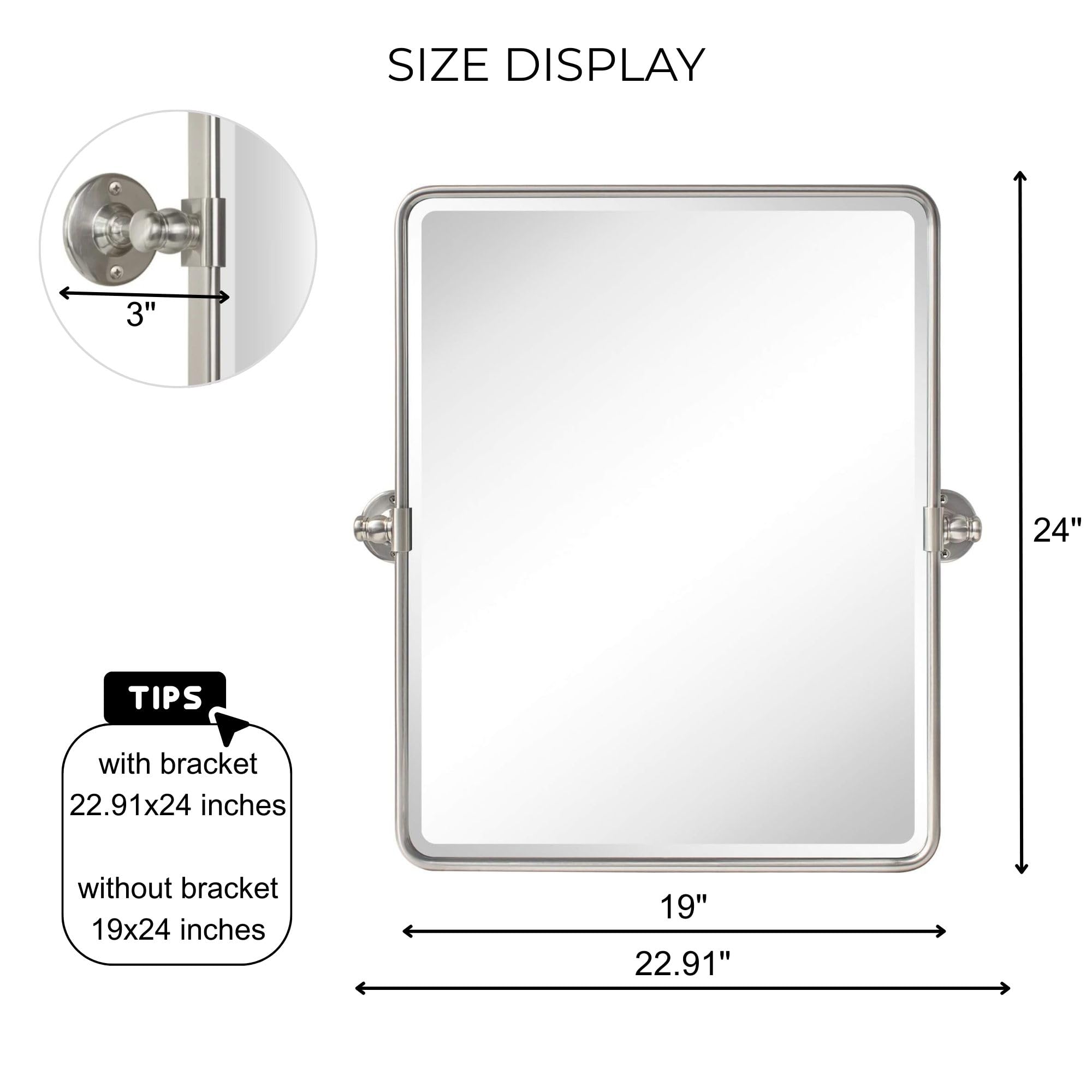TEHOME 50,8 x 61 cm, Farmhouse, Nickel, Metallrahmen, Pivot, Rechteck, Badezimmer Spiegel, Abgerundete Rechtecke, Schwenkbar, Abgeschrägt, Vanity Spiegel für Wand