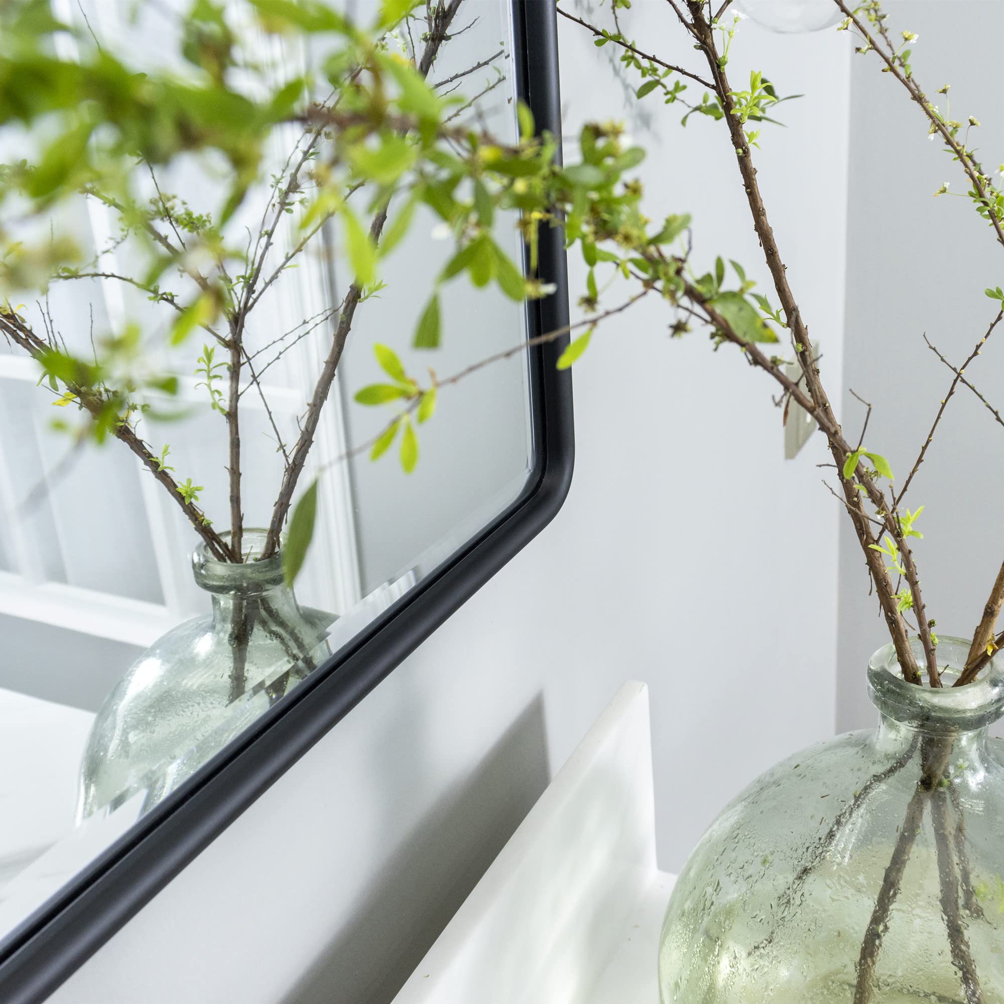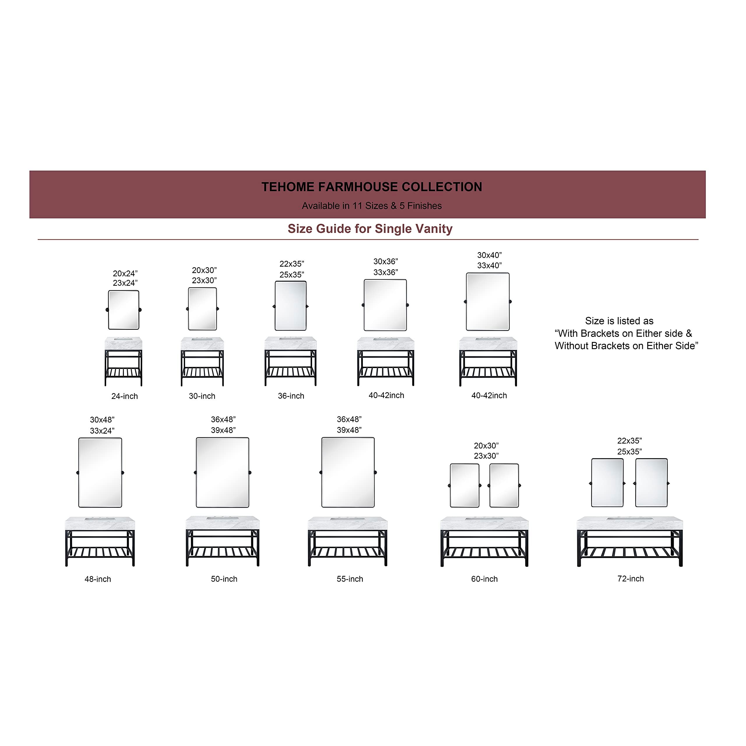 TEHOME 50,8 x 61 cm, schwenkbar, Mattschwarz, rechteckig, Badezimmerspiegel, neigbar, Metallrahmen, abgeschrägter Kosmetikspiegel für vertikale Wandaufhängung