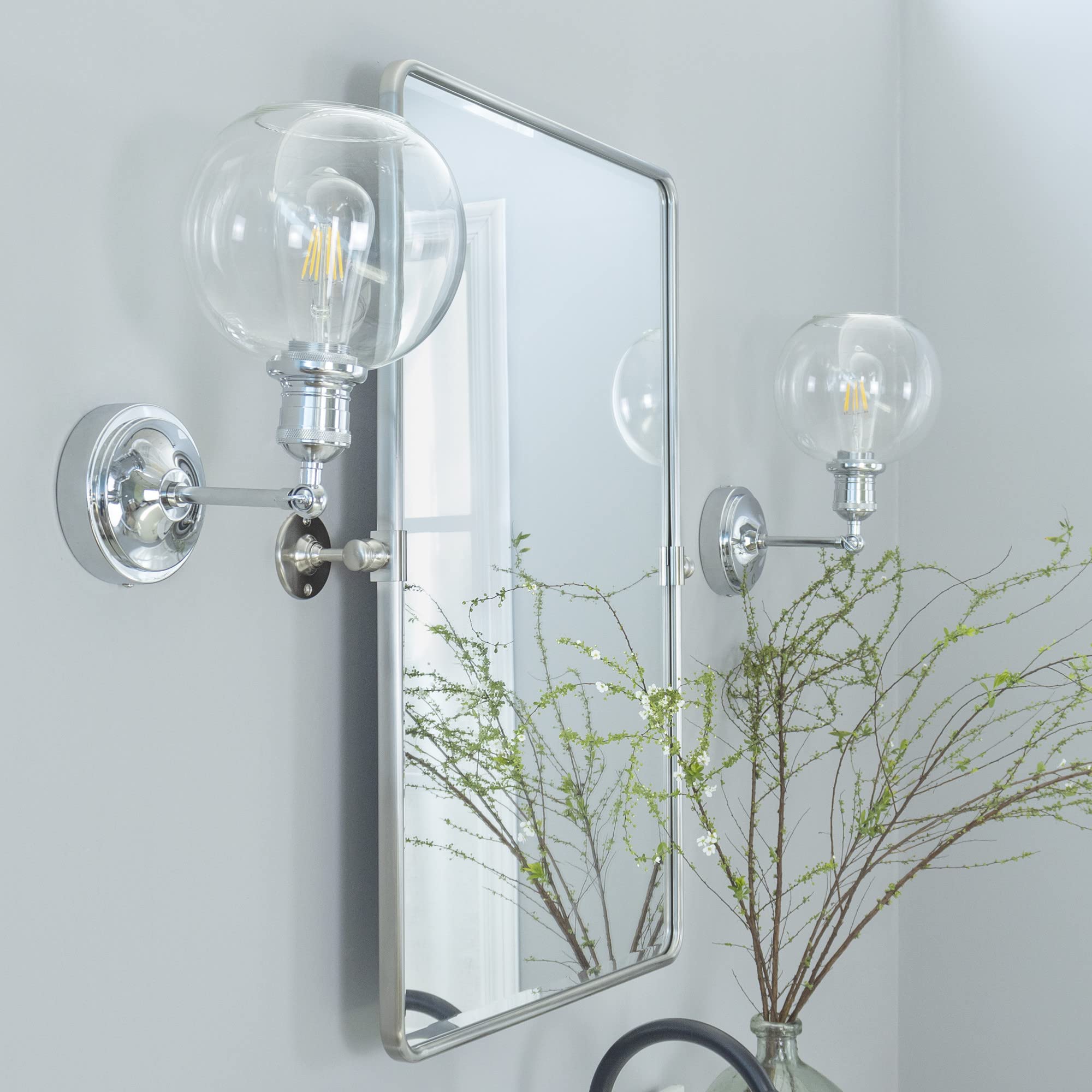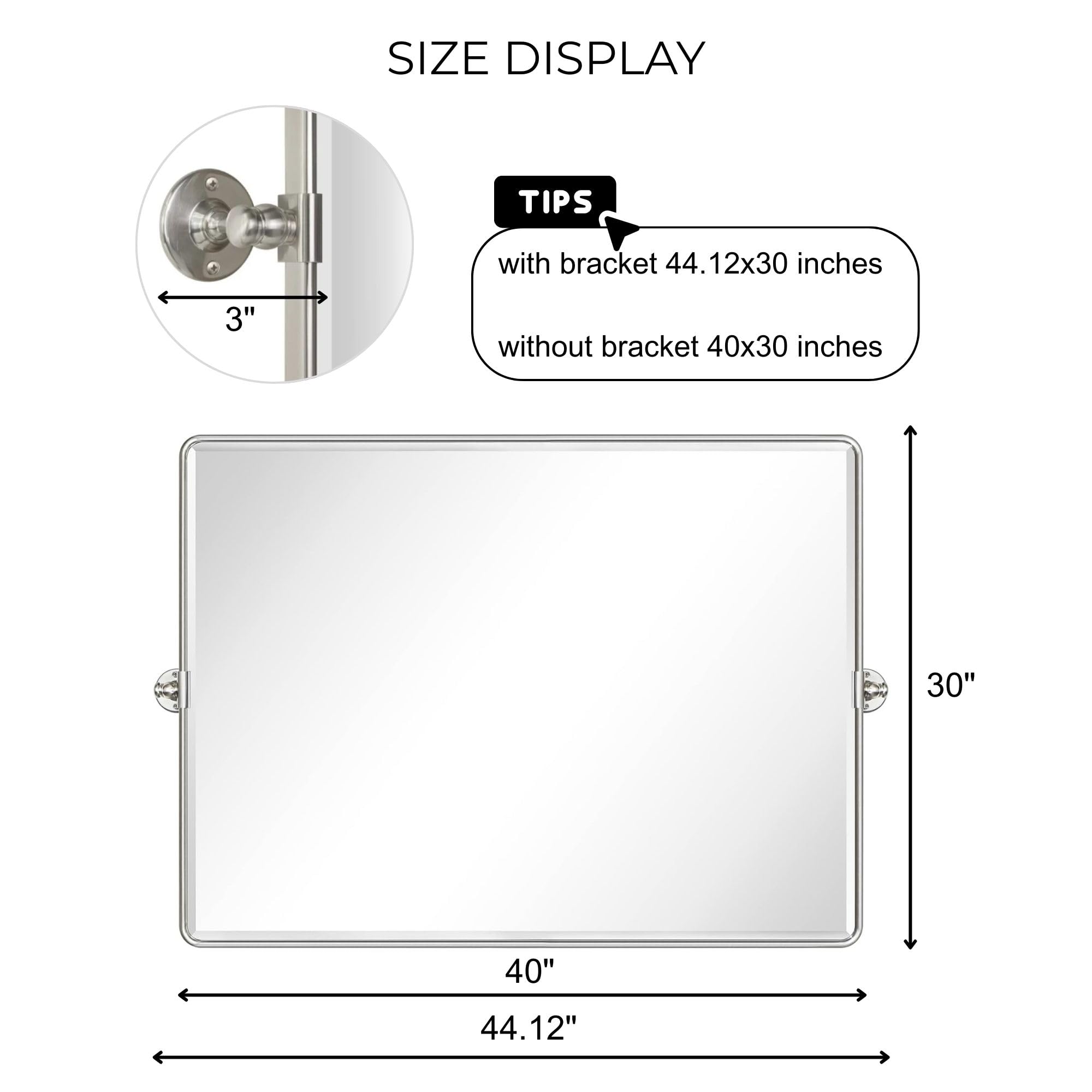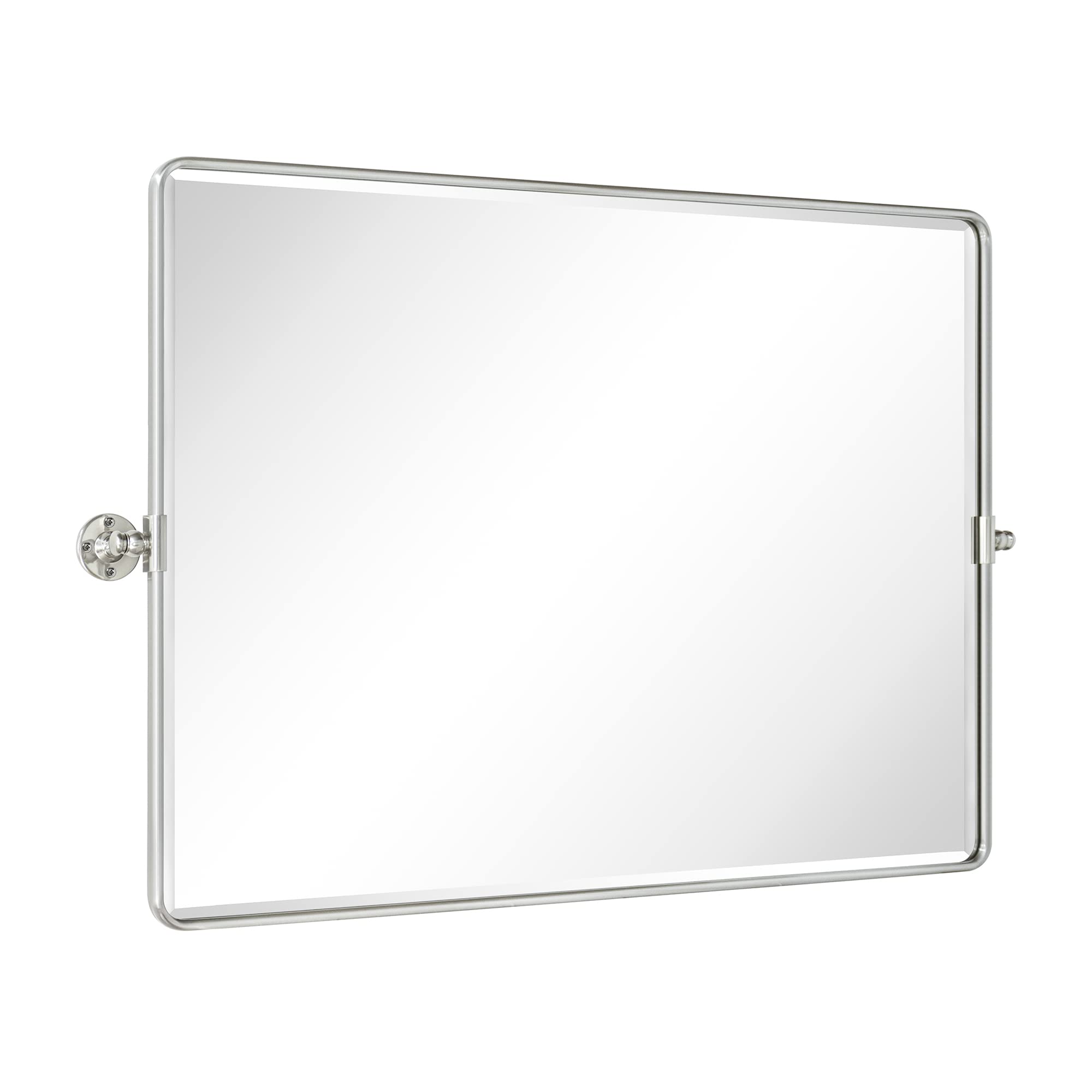 TEHOME 101,6 x 76,2 cm, Gebürstet Nickel, Horizontal, Pivot Spiegel, 76,2 x 101,6 cm, Metallrahmen, Rechteck, Schwenkbar, Abgeschrägt, Vanity Spiegel für Wand