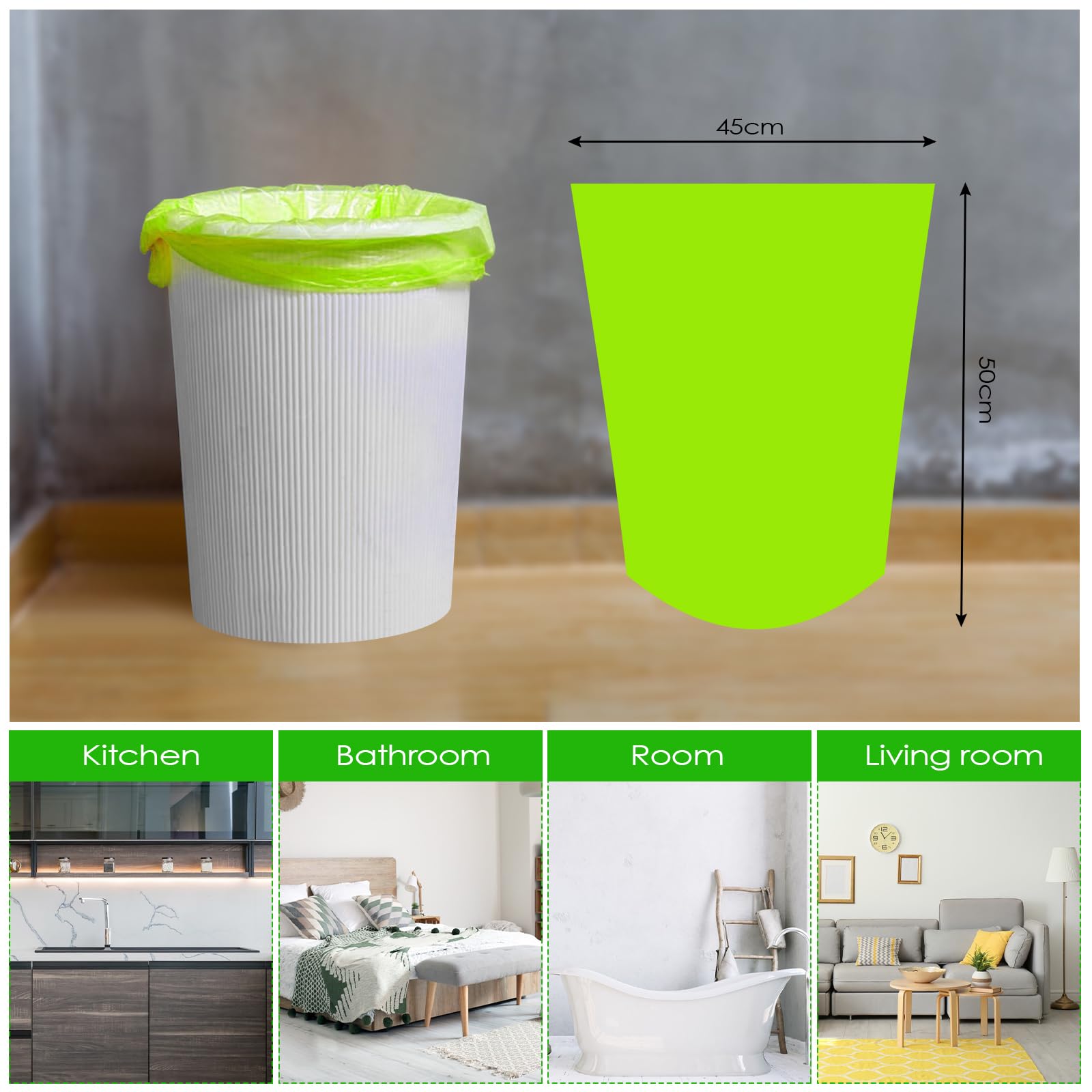Tekenewbse 120 Stück Müllbeutel, Biomüllbeutel 20L, 45 x 50 cm Bio Müllsäcke, Mülltüten, Biomülltüten, Kompostierbare Müllbeutelm, Biomüllbeutel Papier, Biomüllsäcke, Müllsäcke, Trash Bags (Grün)