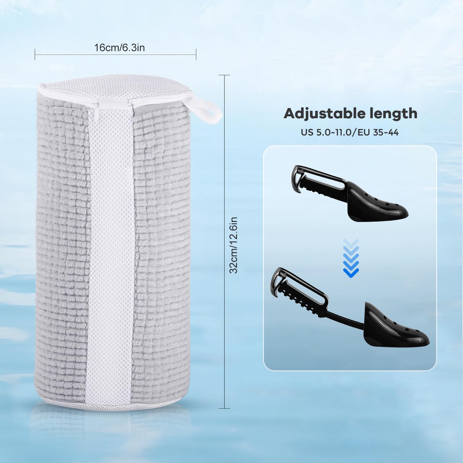 • 【1 Paare verstellbarer Schuhspanner】Diese Schuhspanner sind fachmännisch entworfen, um die Form Ihrer Schuhe zu erhalten und den Kontakt zwischen der Schuhoberfläche, Wasser, Reinigungsmittel und internen Fasern zu verbessern. Verstellbare Schuhspanner passen sowohl für Männer- als auch für Frauenschuhgrössen, passend für verschiedene Arten von Schuhen. Bei Verwendung mit unserem Schuhwaschbeutel reinigen die Reinigungsfasern im Inneren die Oberfläche der Schuhe effektiv.