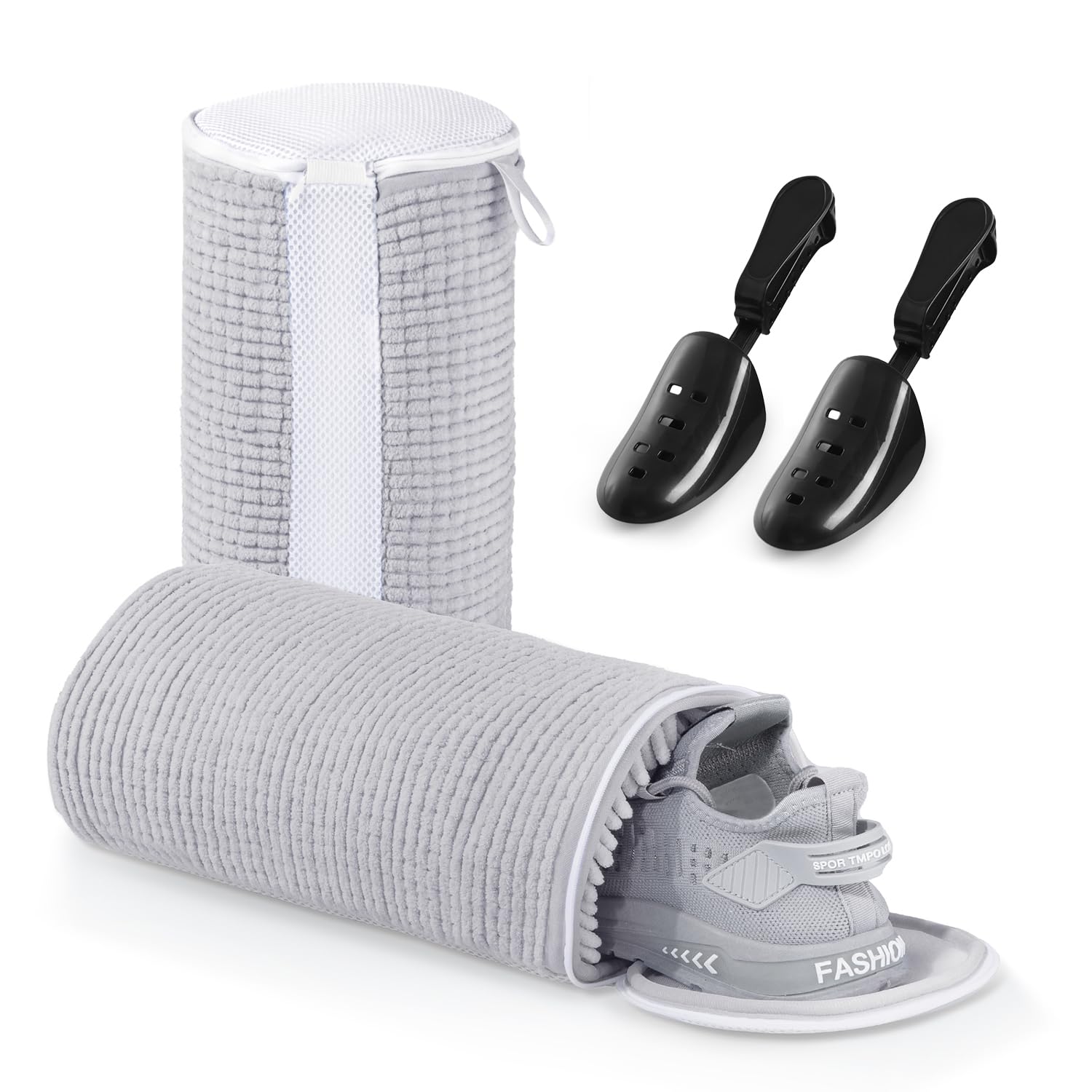 Teletrogy 2Pcs Schuhe Waschbeutel, Schuhwaschbeutel Waschmaschine mit Verstellbare Schuhspanner, Wäschesack Schuhe mit Verstecktem Reissverschluss, Wiederverwendbarer Wäschenetz für Sneaker, Grau