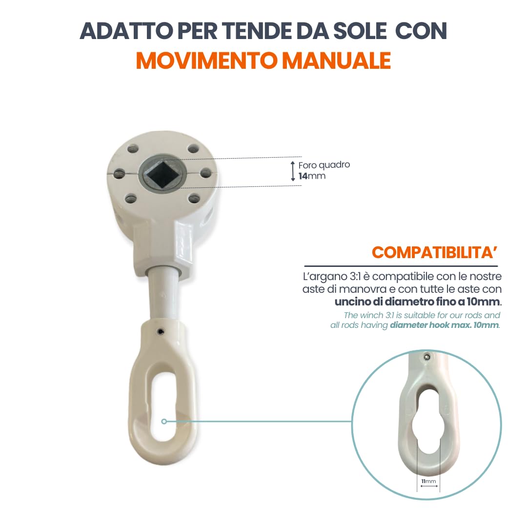 TENDAGGIMANIA Schneckengetriebe für Markisen - schnell und universell, weiss, Untersetzung 3:1
