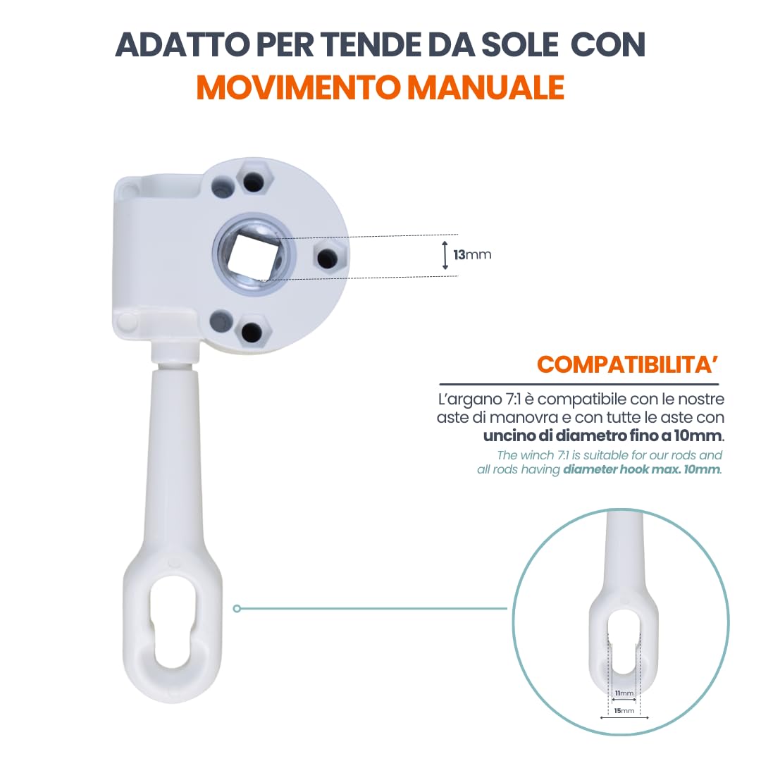 TENDAGGIMANIA Schneckengetriebe für Markisenkurbel mit manueller Bewegung über Markisenkurbel- Farbe BRAUN - Untersetzung 7:1 (mit 7 Umdrehungen rollt 1 Meter Stoff)- Getriebe für Markisen