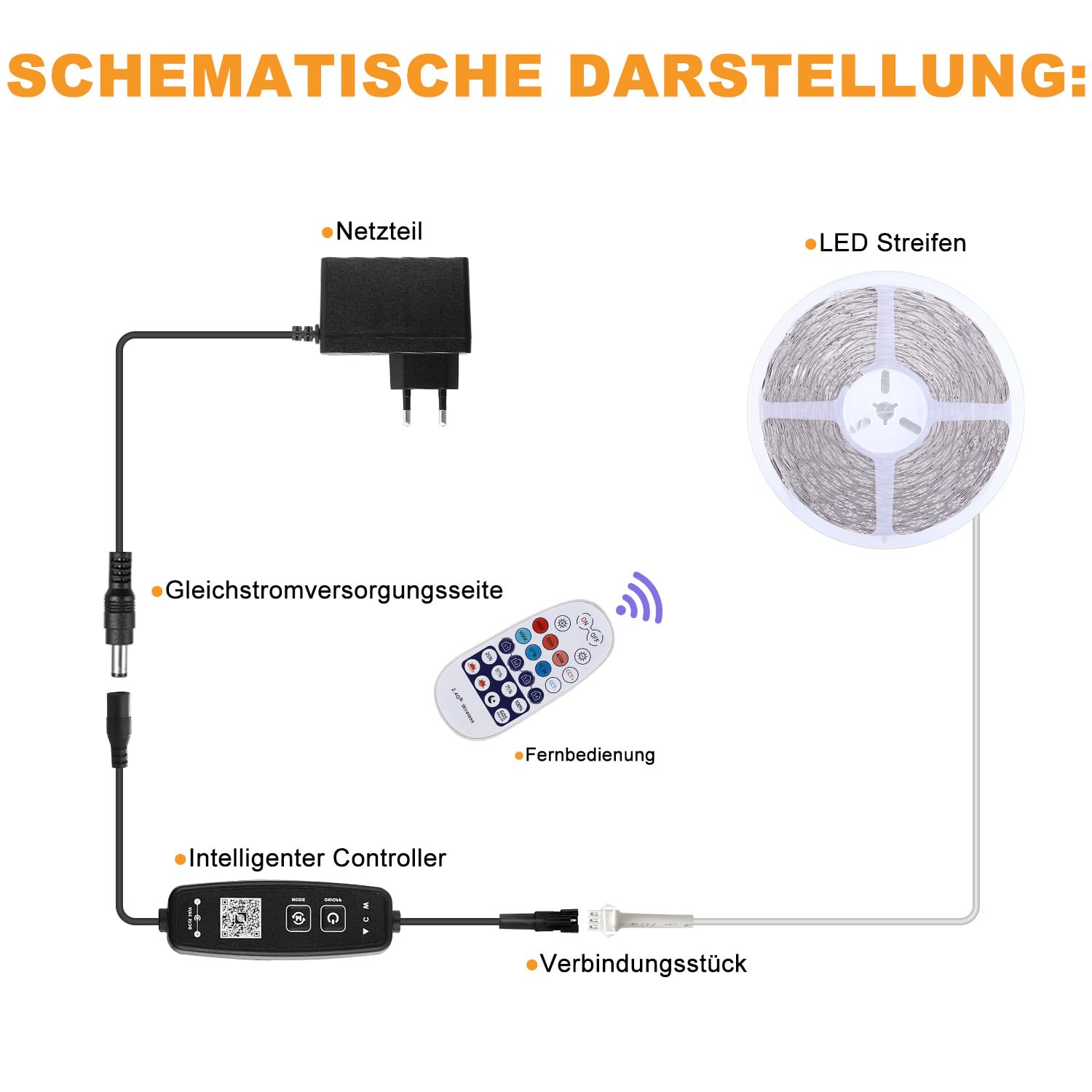 [Paketinformationen] Was Sie erhalten: 24 V Netzteil + Controller + Fernbedienung + Lichtstreifen + feste Schnalle + Bedienungsanleitung.