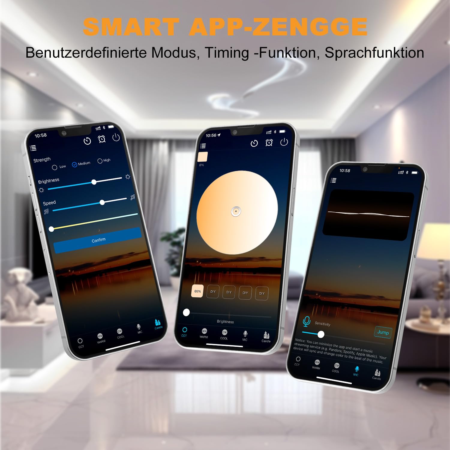 Fügen Sie Ihrem Zuhause Intelligenz und Komfort mit intelligenten Funktionen wie Sprachregelung, intelligentem Timer, App -Steuerung, Fernbedienung und verstellbarer Helligkeit (dimmbar)/Farbtemperatur (Farbe) hinzu. LED -Lichtstreifen können in einer Vielzahl von Szenen verwendet werden, einschliesslich der Küche, des Schlafzimmers unter der Theke und des Schranks. Das Strip Light selbst verfügt über einen Klebstoff und einen Montageclip zur einfachen Installation.