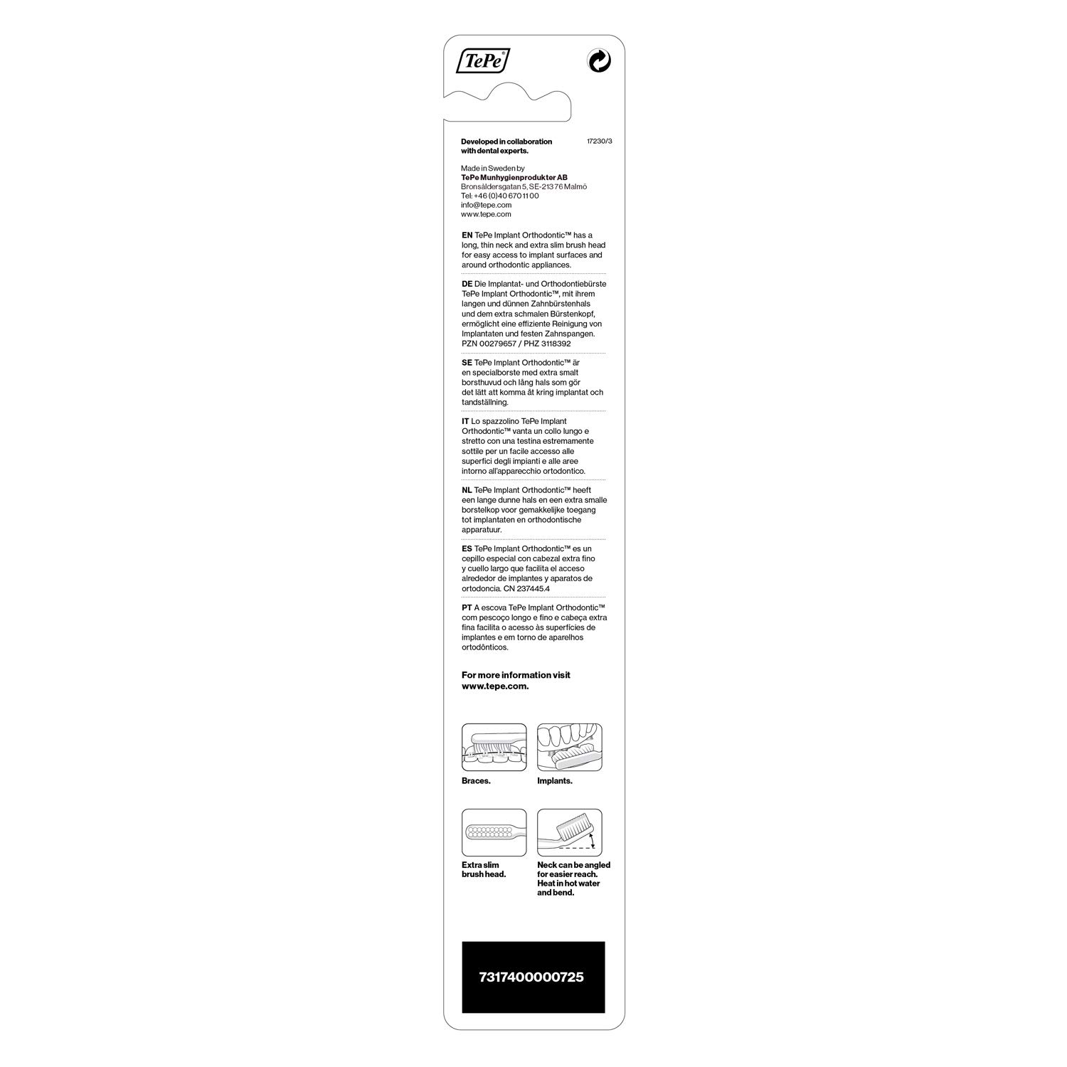 TEPE Spezial-Zahnbürste Implantat Orthodontic mit extra schmalem Bürstenkopf - für Zahnspangen & zur Implantat Reinigung hergestellt / 1 x 1 Stück, Farblich sortiert, 1stk (Packung mit 3)