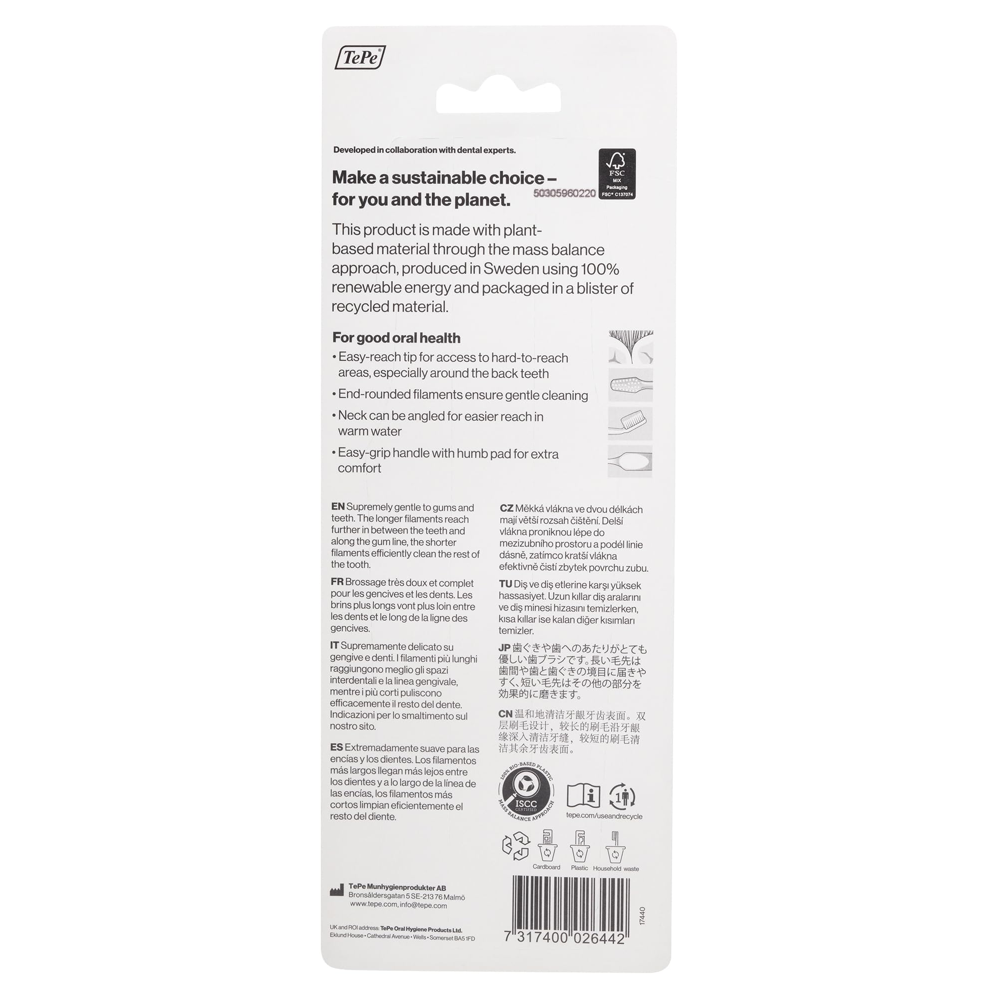 TEPE Supreme Zahnbürste – Konische Bürsten-Form mit kurzen und langen Borsten für optimale, sanfte Reinigung bis in die Zahnzwischenräume, 1 x 3 Stück in verschiedenen Farben