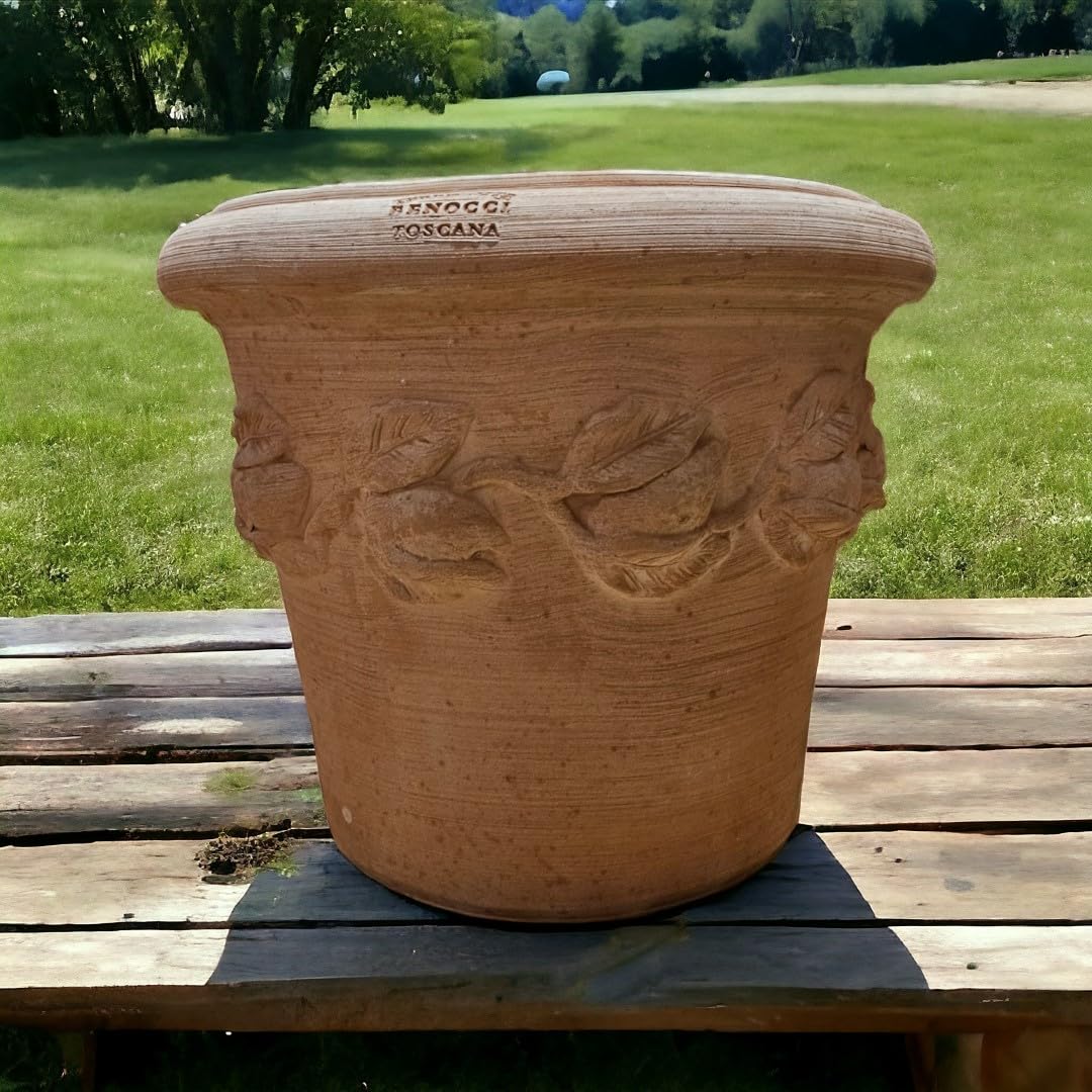 Klassische Form mit einem wunderschönen Limonenmuster, welches sich um das Gefäss rankt. Die sich verjüngende Form macht sich in jeder Umgebung hervorragend und schafft eine klassische, toskanische Atmosphäre. Egal ob im Garten, auf dem Balkon oder in den eigenen 4 Wänden. Sie werden mit Sicherheit lange Spass an diesem hochwertigen Gefäss haben.