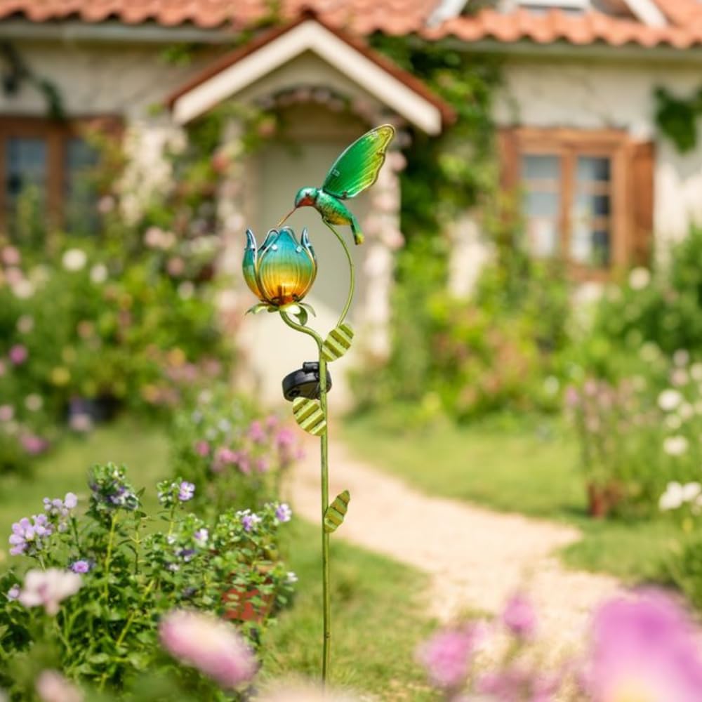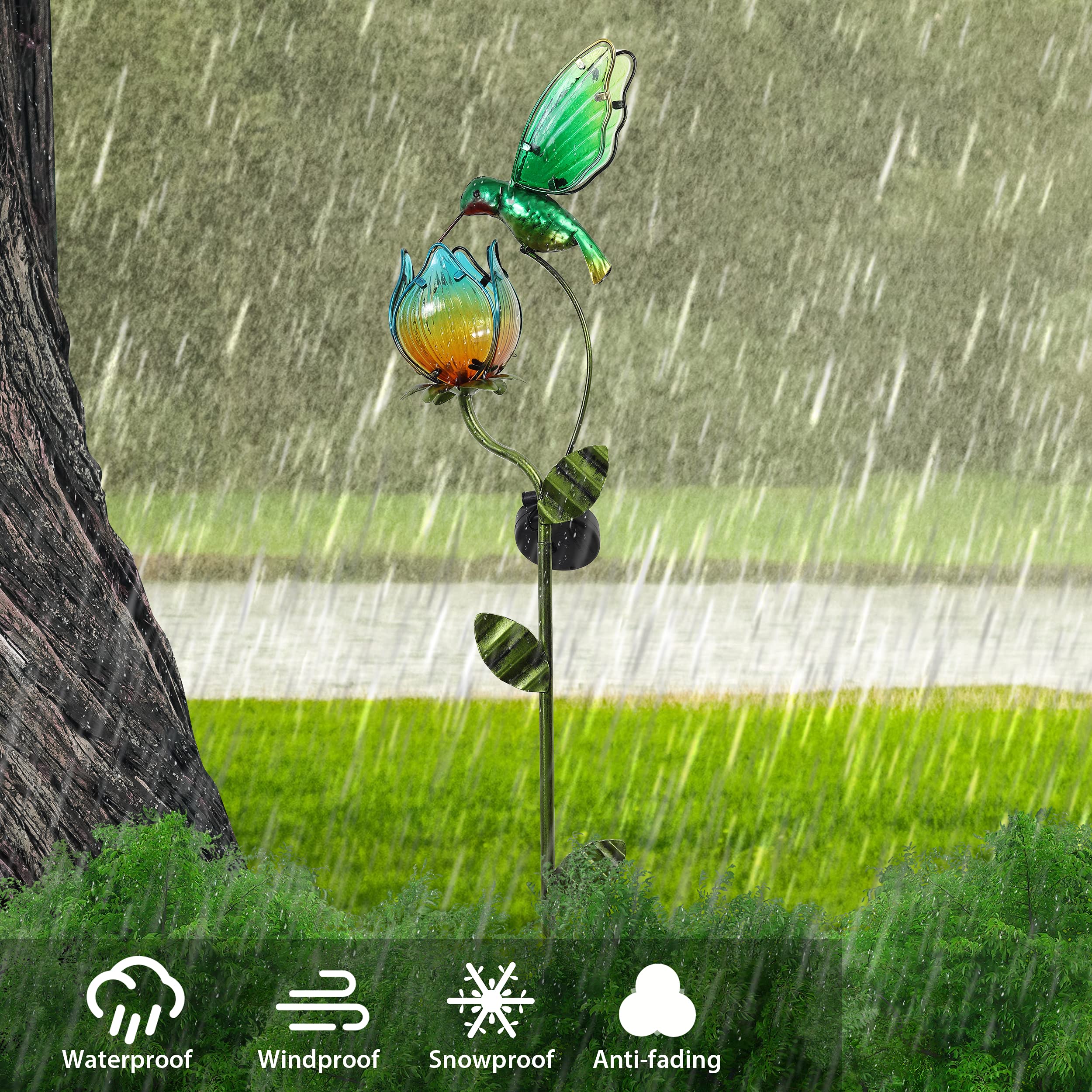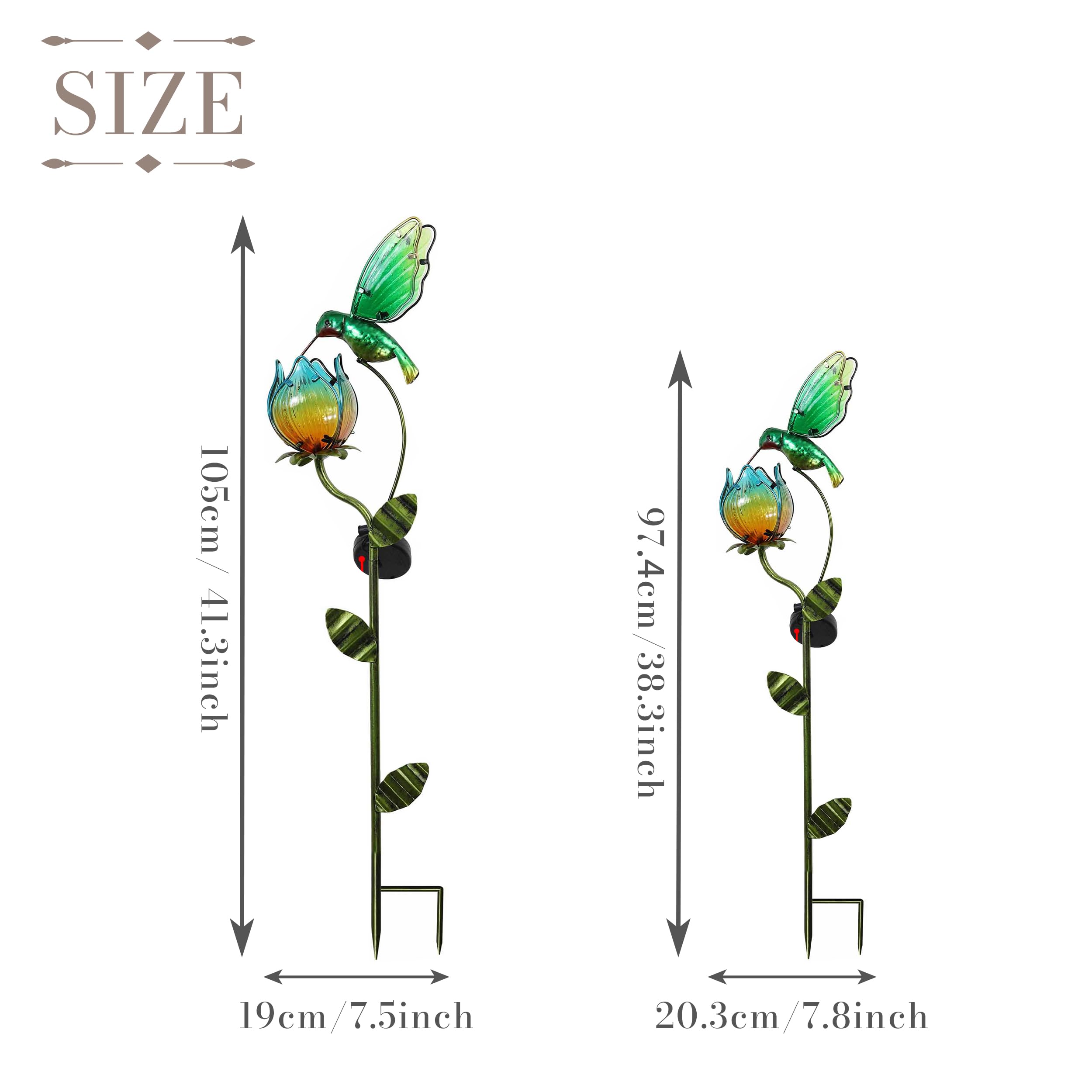 TERESA'S COLLECTIONS Solarlampen für Aussen, Gartendeko für draussen Wetterfest,105CM, Solarleuchte Metall Gartenlampe, Kolibri-Blume für Terrasse,Figur Geschenke für Frauen/Mama (L)