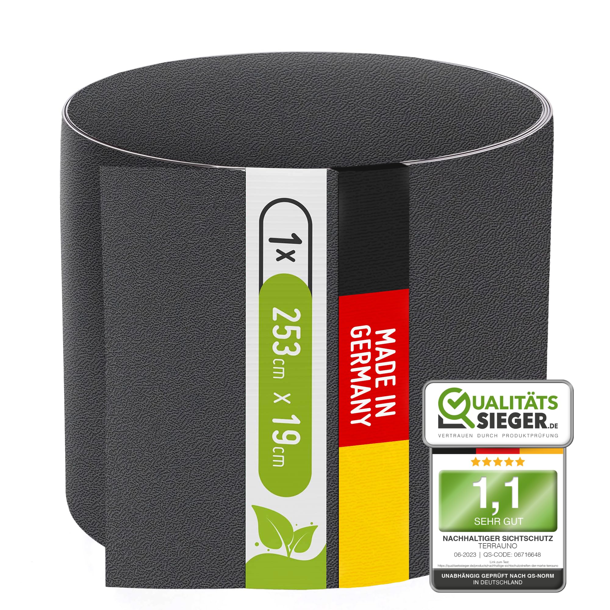 TerraUno Nachhaltige Sichtschutzstreifen für Doppelstabmatten, Polypropylen, Made in Germany, RAL 7016 Anthrazit, 1 Streifen, extra stabil, Lederoptik, Zaun Sichtschutz mit UV-Beständigkeit