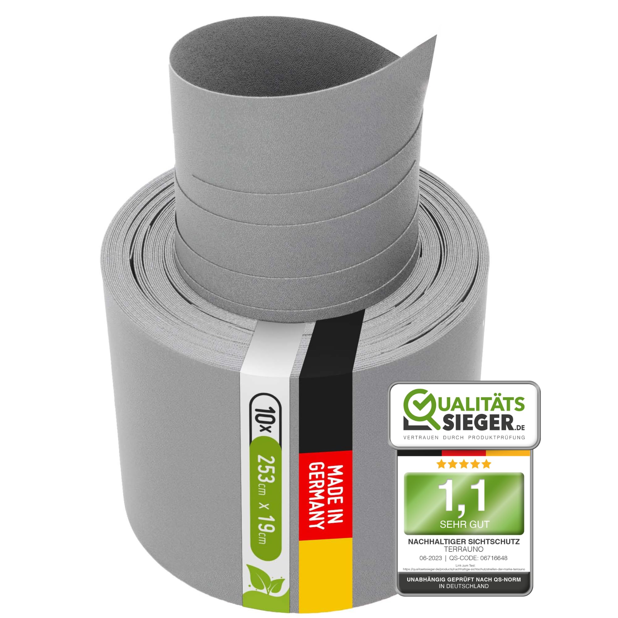 TerraUno Nachhaltige Sichtschutzstreifen für Doppelstabmatten, Polypropylen, Made in Germany, RAL 7040 Grau, 10 Streifen, extra stabil, Lederoptik, Zaun Sichtschutz mit UV-Beständigkeit
