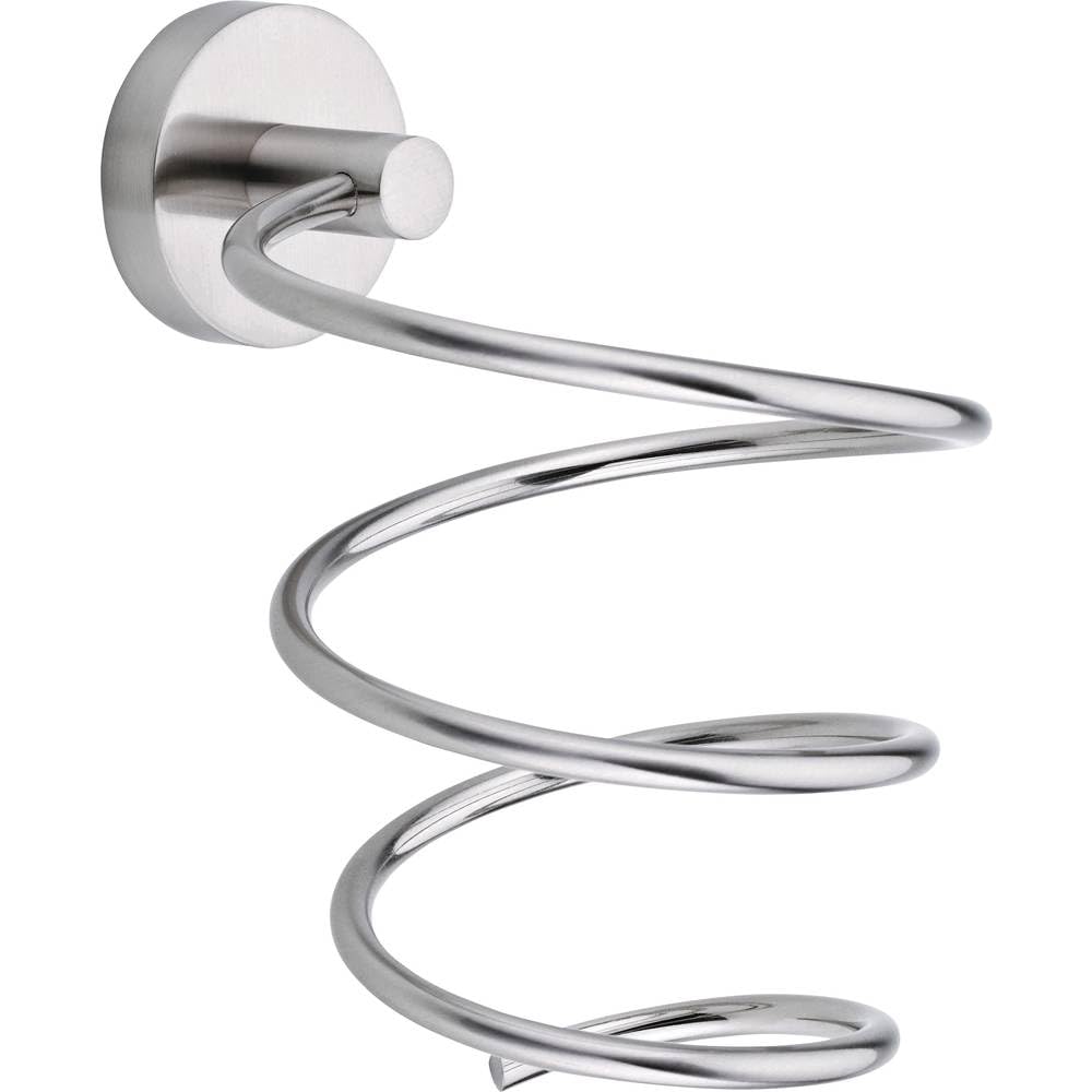 tesa MOON Föhnhalter verchromt, spiralförmig - Haartrockner-Halter zur Wandbefestigung ohne Bohren, inkl. Klebelösung - 100mm x 160mm x 135mm
