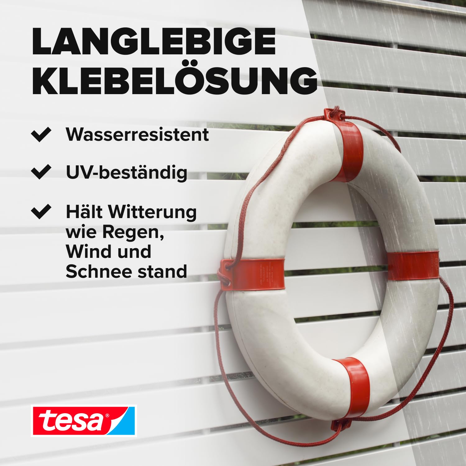 tesa Powerbond Outdoor - Doppelseitiges Montageband für den Aussenbereich - Wasserfestes, starkes, UV-beständiges Klebeband - 5 m x 19 mm