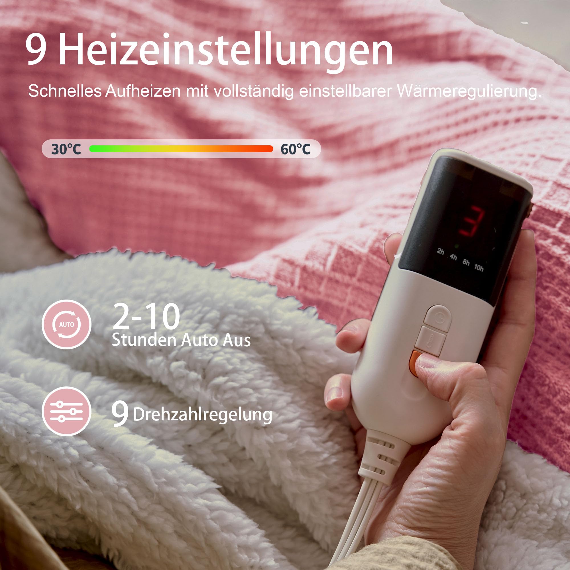 Texciting heizdecke 130X160 cm-Wärmedecke heizdecke mit 9 Heizstufen-10 Stunden Auto Off Überhitzungsschutz Maschinenwaschbar (Rosa)