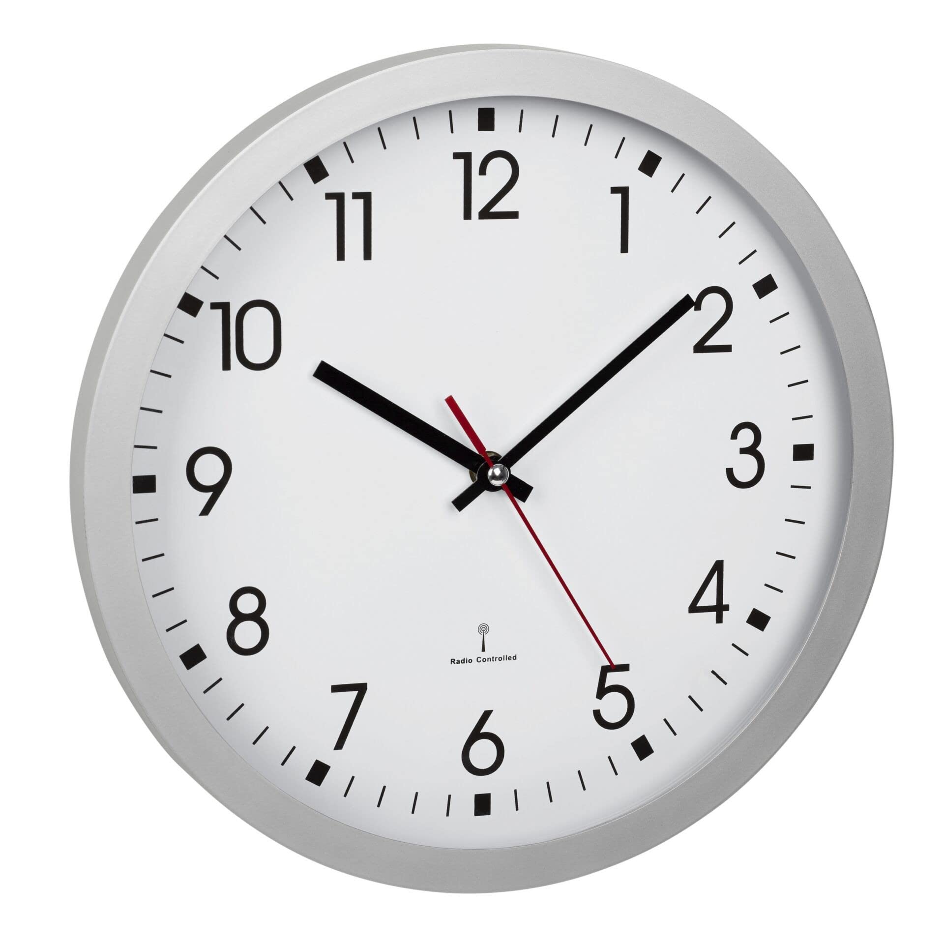 Das Design dieser analogen Wanduhr ist zeitlos und fügt sich harmonisch in nahezu jede Umgebung (Büro, Küche, Wohnzimmer, Keller, Garage) ein. Die silberne Uhr hat eine hochwertige Echtglasabdeckung. Das weisse Zifferblatt mit rotem Sekundenzeiger ist gross und gut ablesbar. Die TFA Dostmann Funk-Wanduhr empfängt die Uhrzeit über das DCF 77 Signal. Damit wird die aktuelle Uhrzeit stets auf die Sekunde genau angezeigt und es entfällt die Umstellung von Sommer- auf Winterzeit.Ihre Vorteile der TFA Dostmann Analogen Funk-Wanduhr: