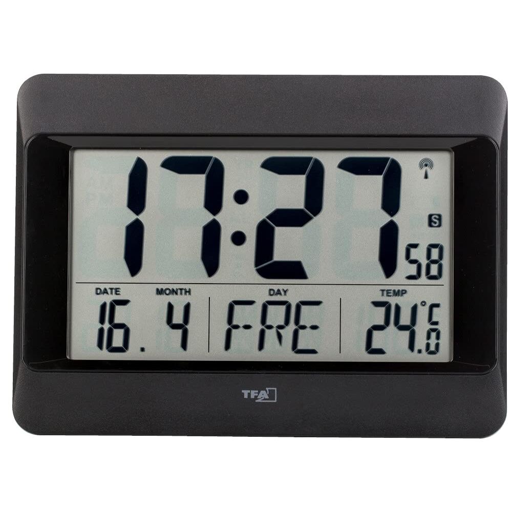 TFA Dostmann Wanduhr digital, 60.4519.01 (Schwarz mit Batterien)