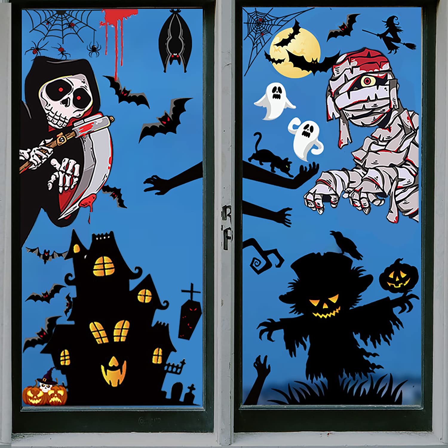 Halloween Fenster Aufkleber Dekoration - 55stk Gross Stickers Wasserdichtes Selbstklebendes für Fenster