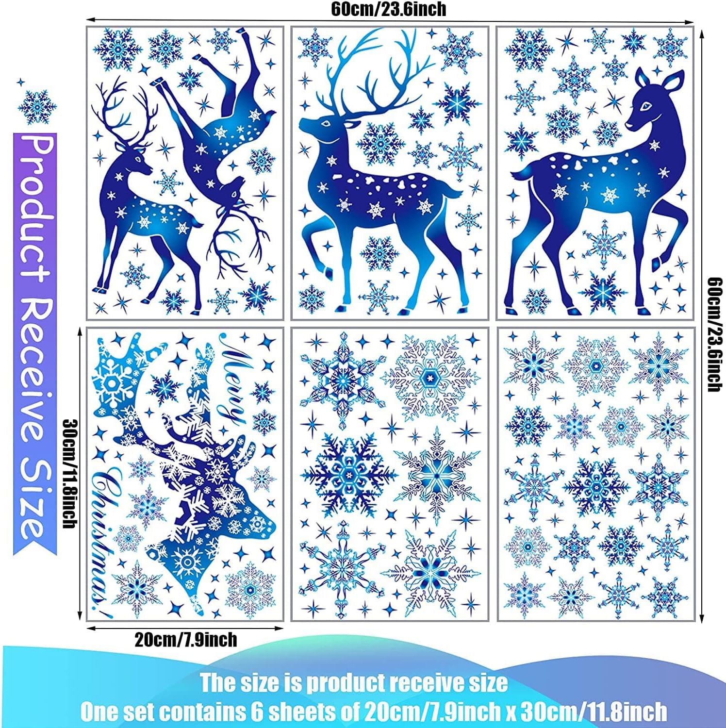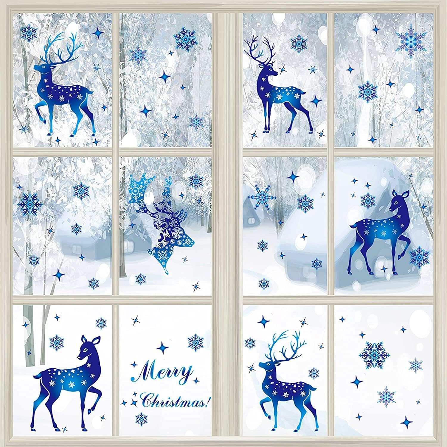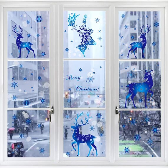 Weihnachtsdeko Fenster Deko,Blue Deer Fensterbilder Selbstklebend Abnehmbare Fensterdeko Statisch Haftende PVC Aufkleber Weihnachten,Fensterbilder Weihnachten Winter Deko