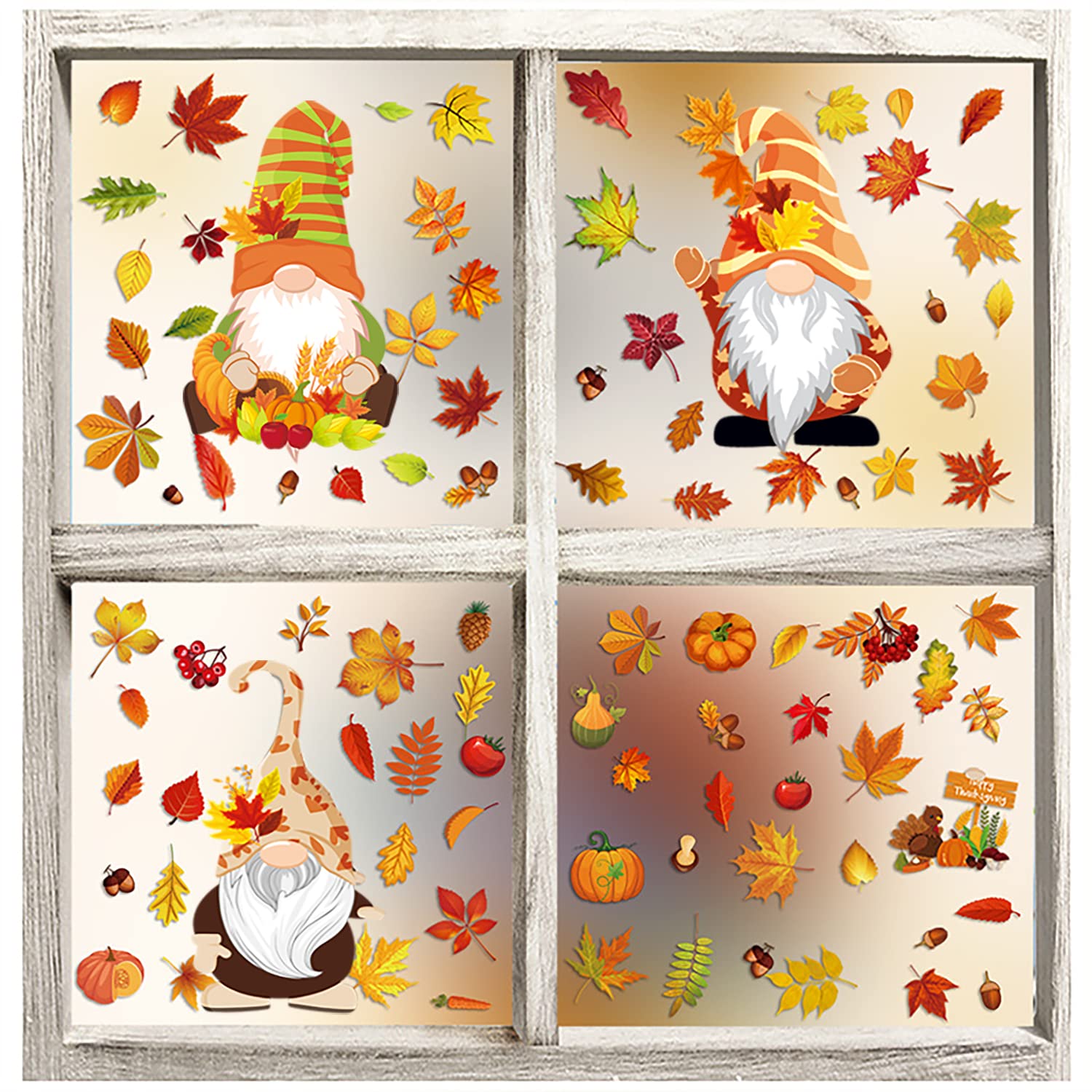 Thanksgiving Herbstdeko Fenster Aufkleber,Fensterbilder Herbst Selbstklebend Thanksgiving Herbstdekorationen Herbst Fensterbilder Herbstblätter Deko Fenster Aufkleber (A)