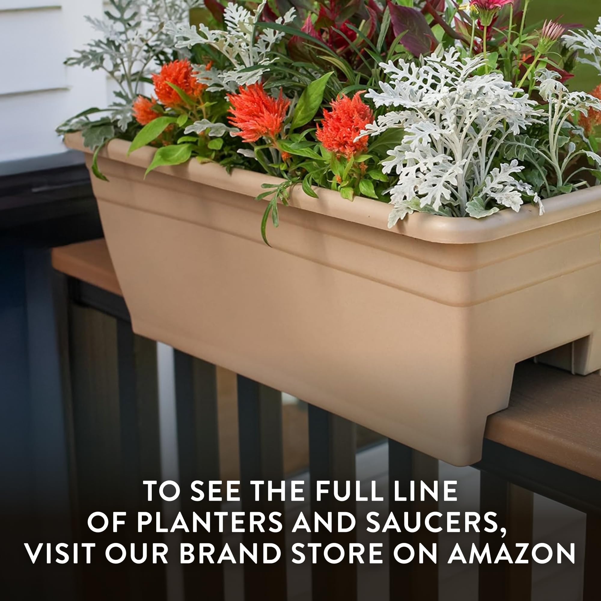 The HC Companies Pflanzkasten für Deckgeländer mit abnehmbaren Ablaufstopfen, Leichter und wetterfester Kunststoff-Blumenkasten, Balkon-Pflanzgefässe für Geländer und Zaun (61 cm, warmes Grau)