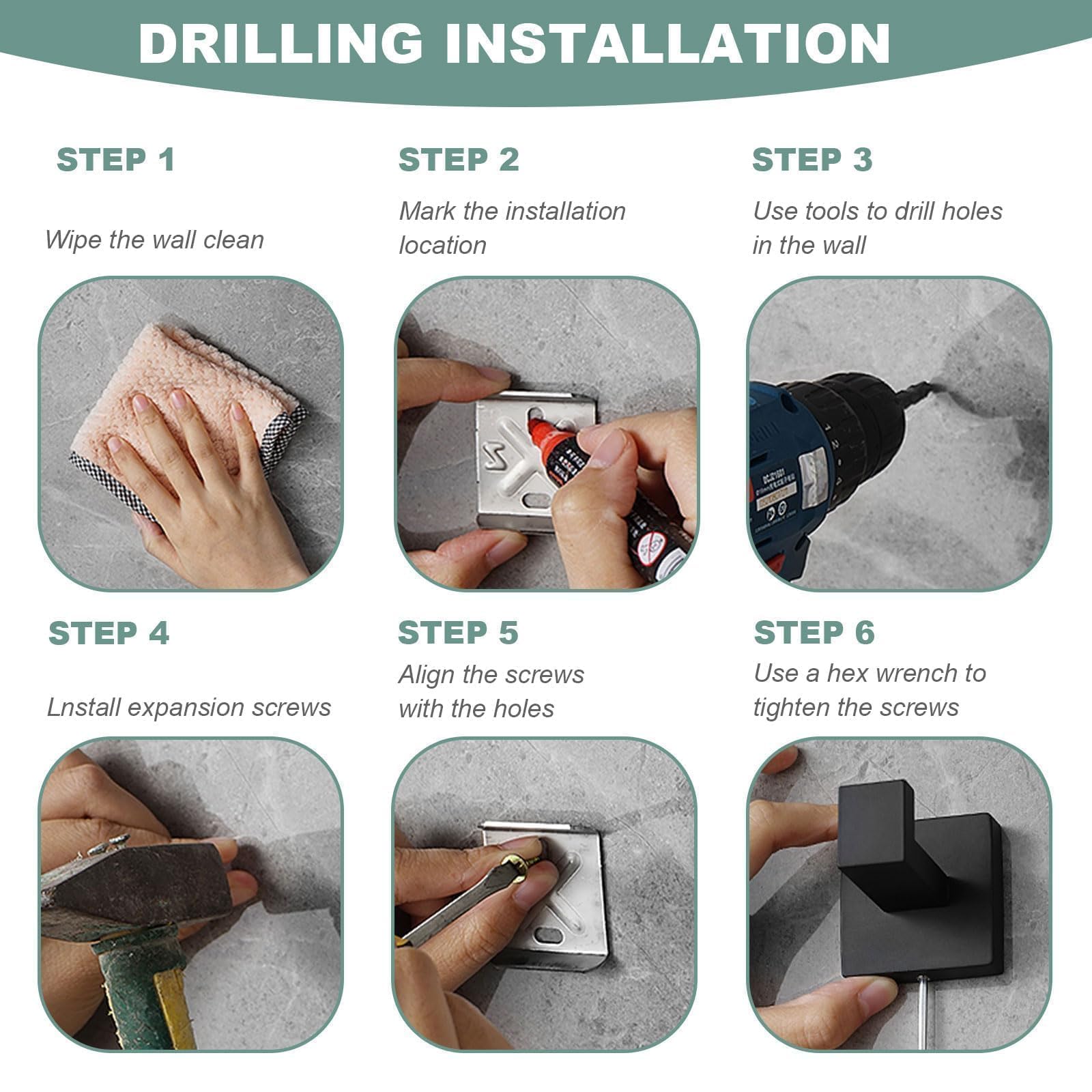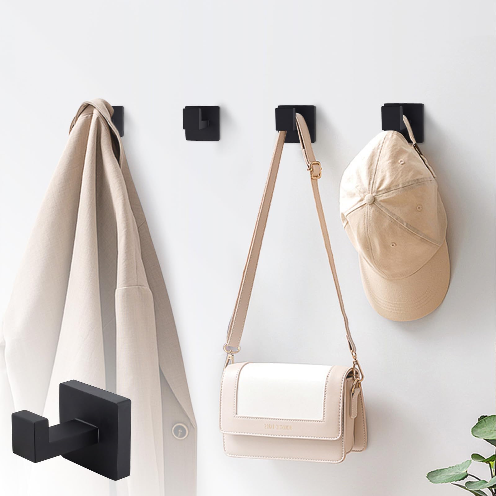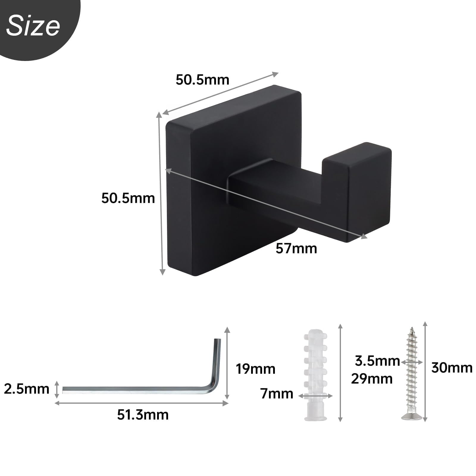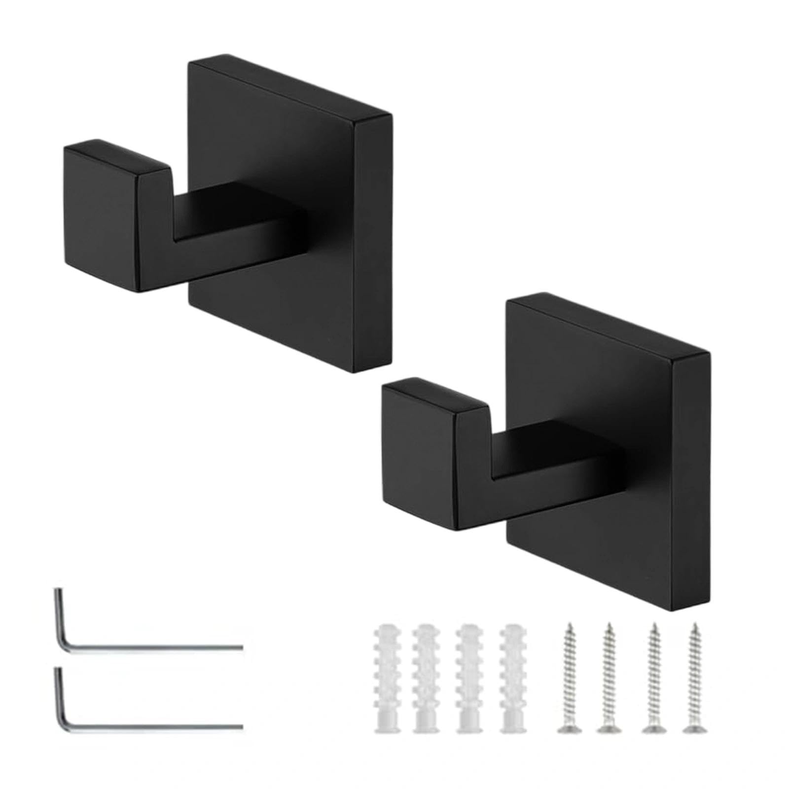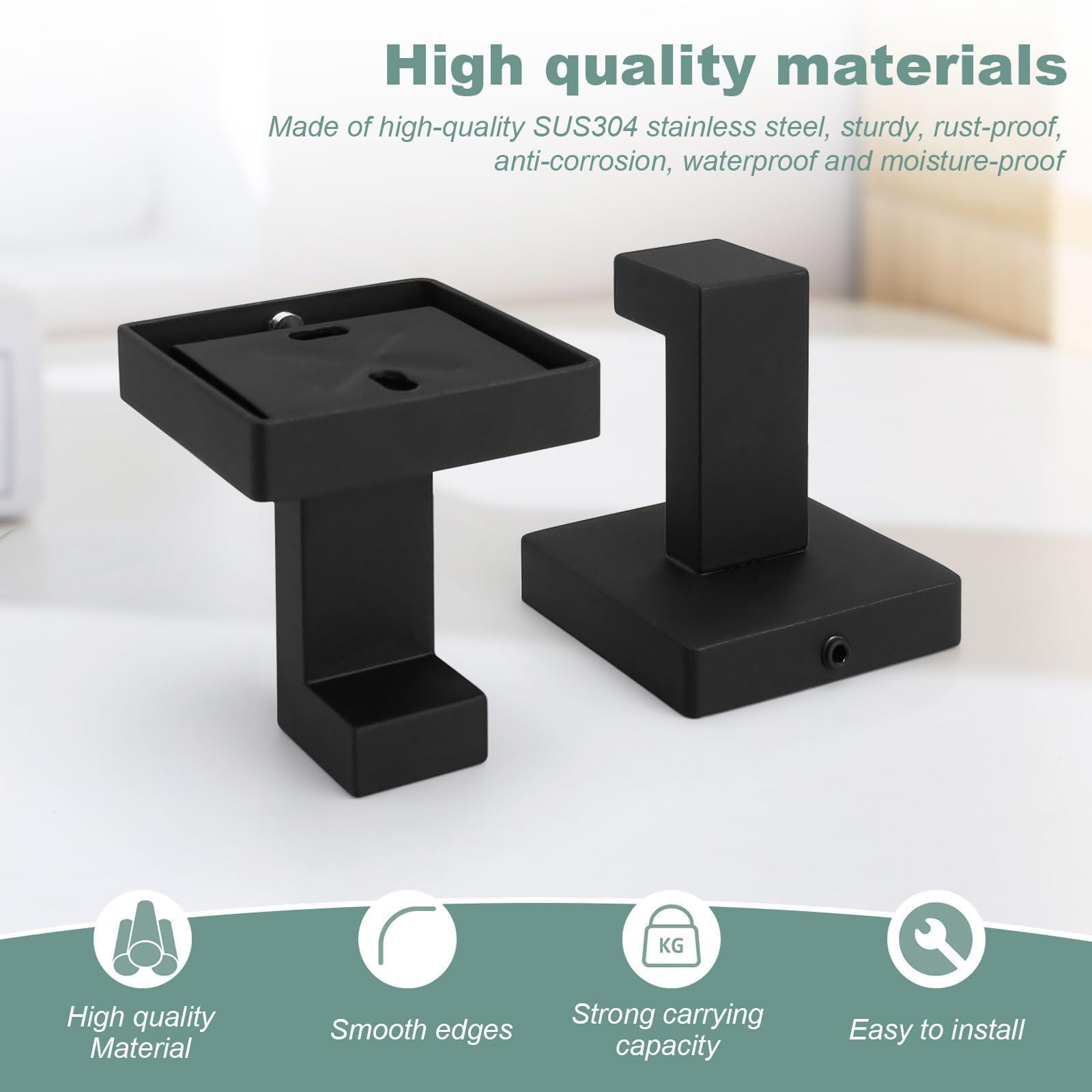 TIANLIN 2 Stück Handtuchhaken zum Bohren, Schwarz Matt Wandhaken aus 304 Edelstahl, Versteckte Montage mit Quadratischem Sockel und Installationswerkzeug, für Badezimmer, Küche, Büro
