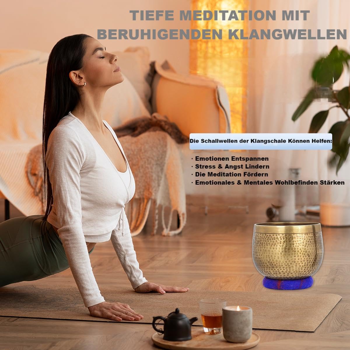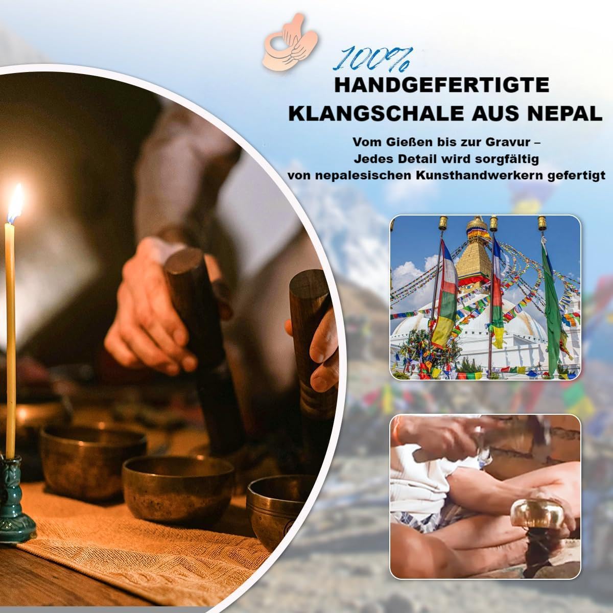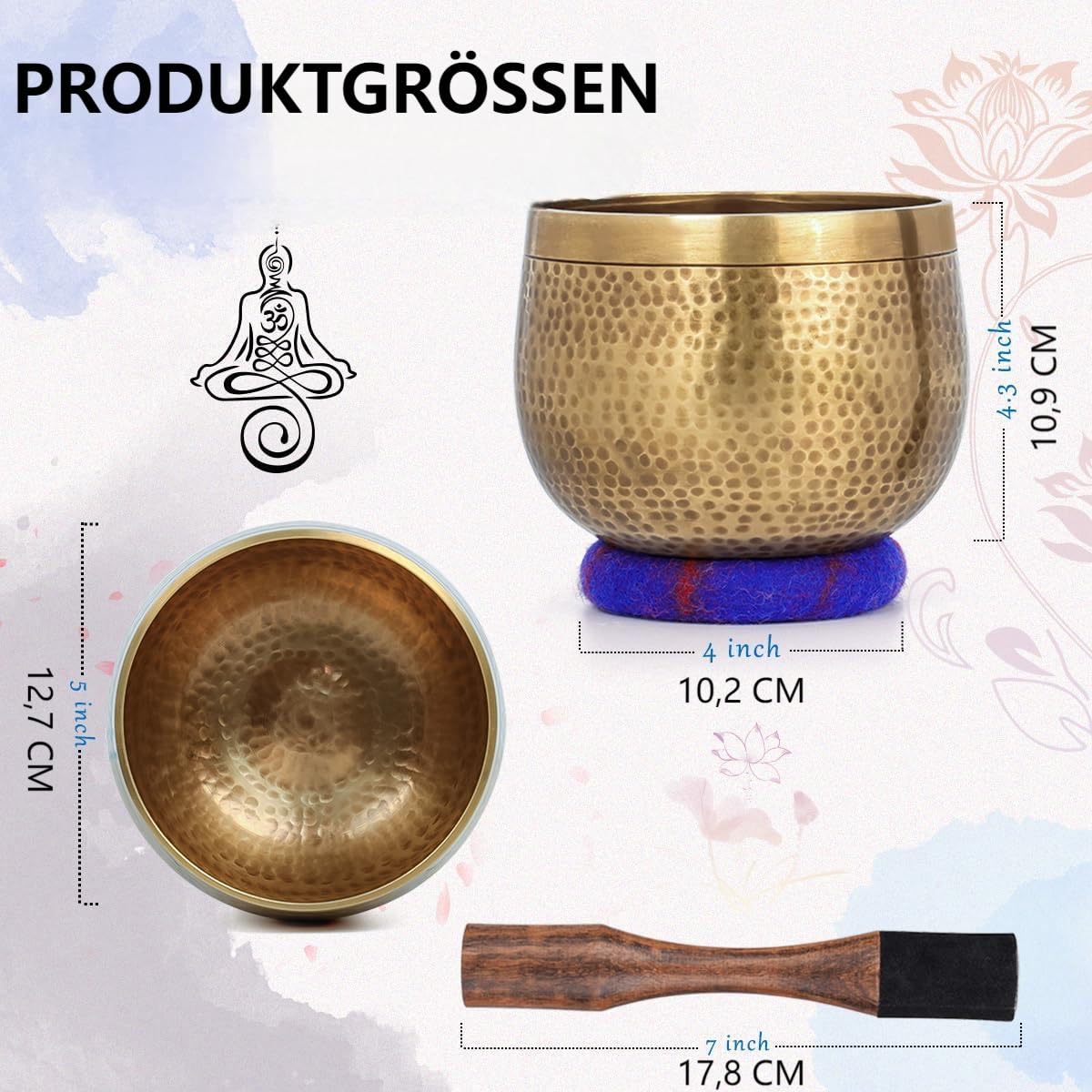 Tibetanische Klangschalen- Set - 100% von Hand in Nepal gehämmerte Klangschale für Meditation, Yoga, Chakra, Meditationszubehör, einzigartige Geschenke für Frauen, Männer (14 cm)