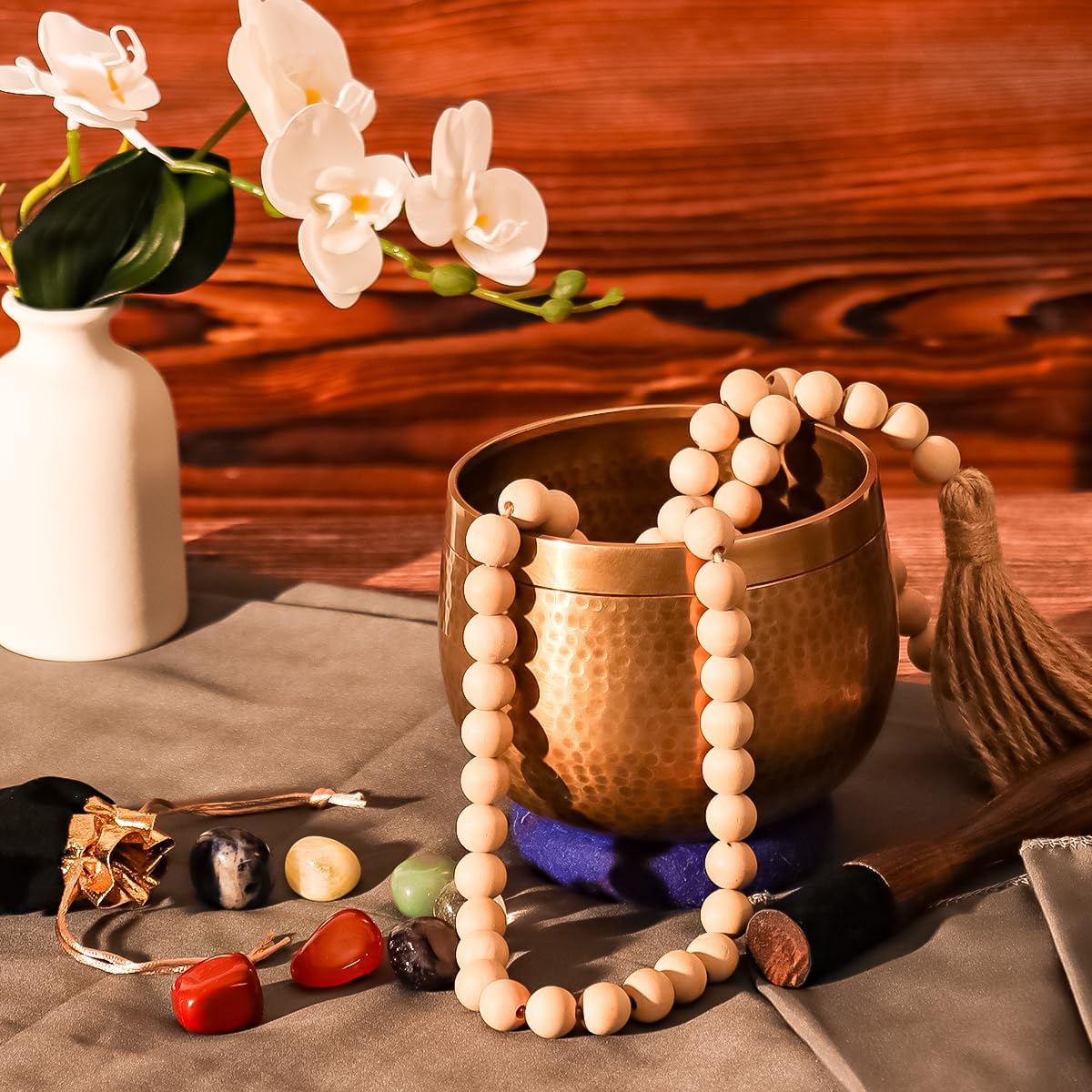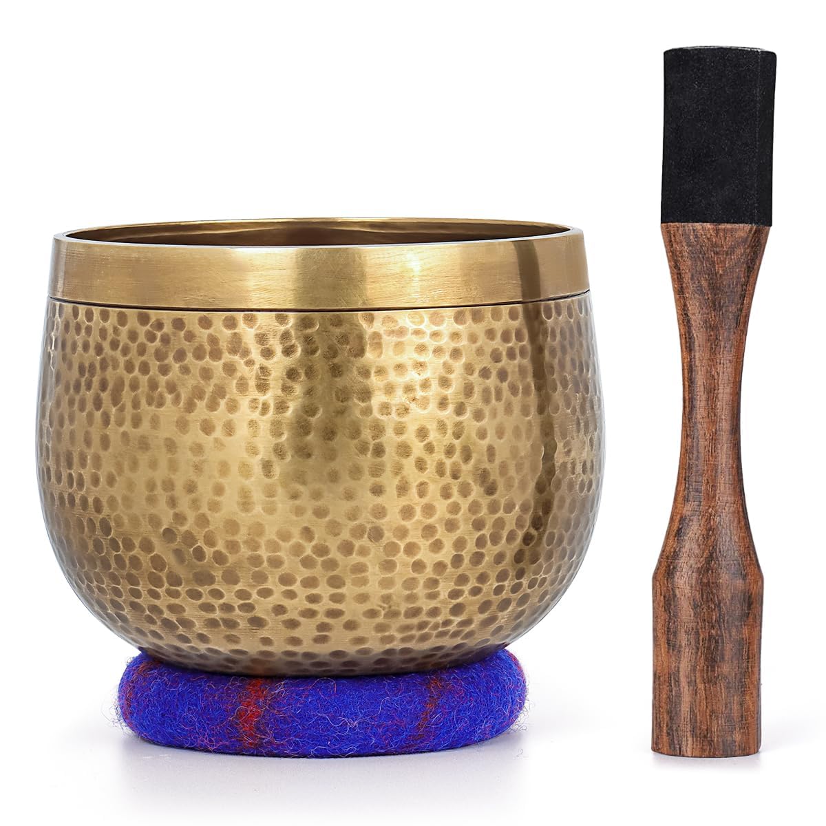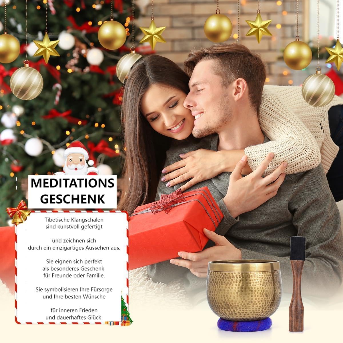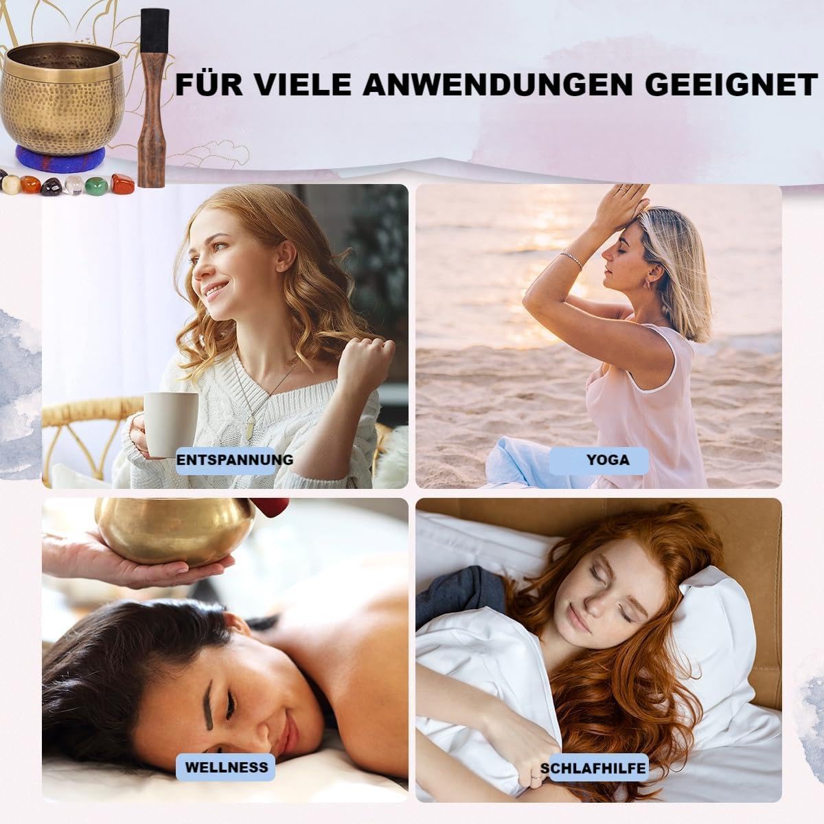 Tibetanische Klangschalen- Set - 100% von Hand in Nepal gehämmerte Klangschale für Meditation, Yoga, Chakra, Meditationszubehör, einzigartige Geschenke für Frauen, Männer (14 cm)