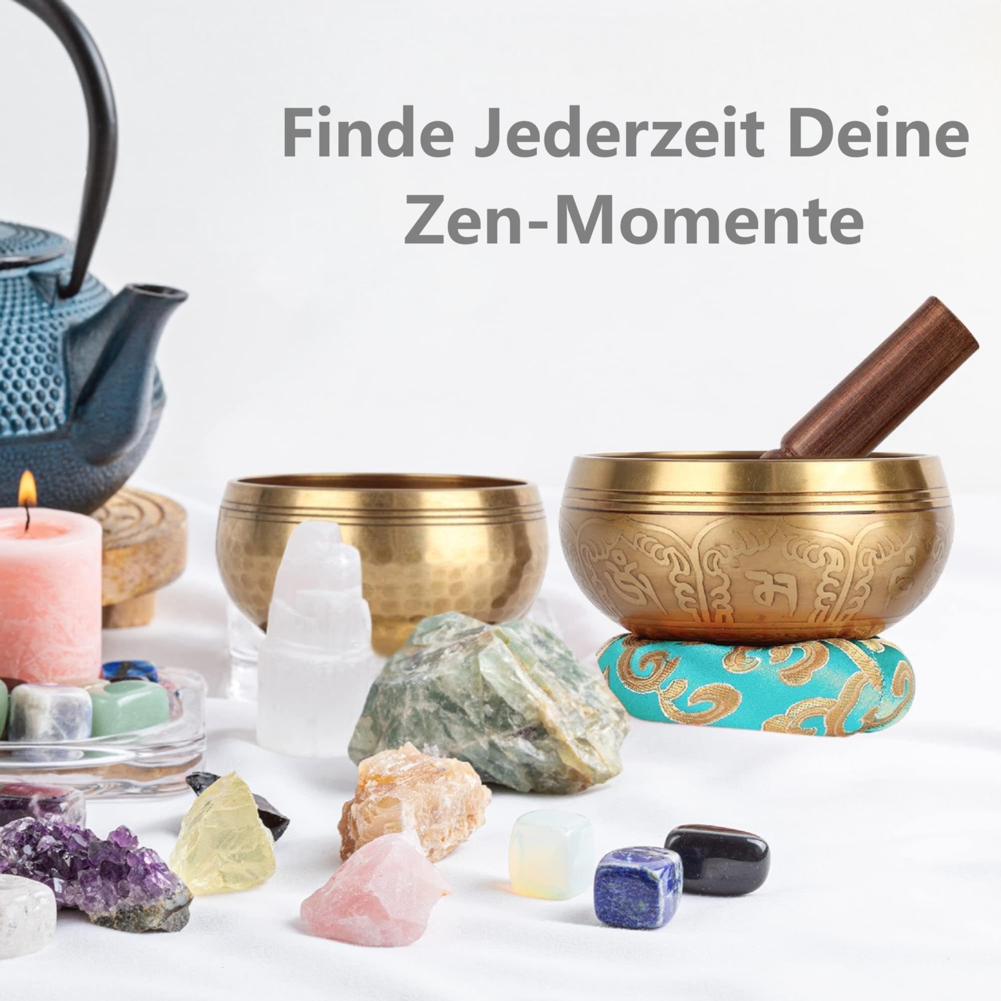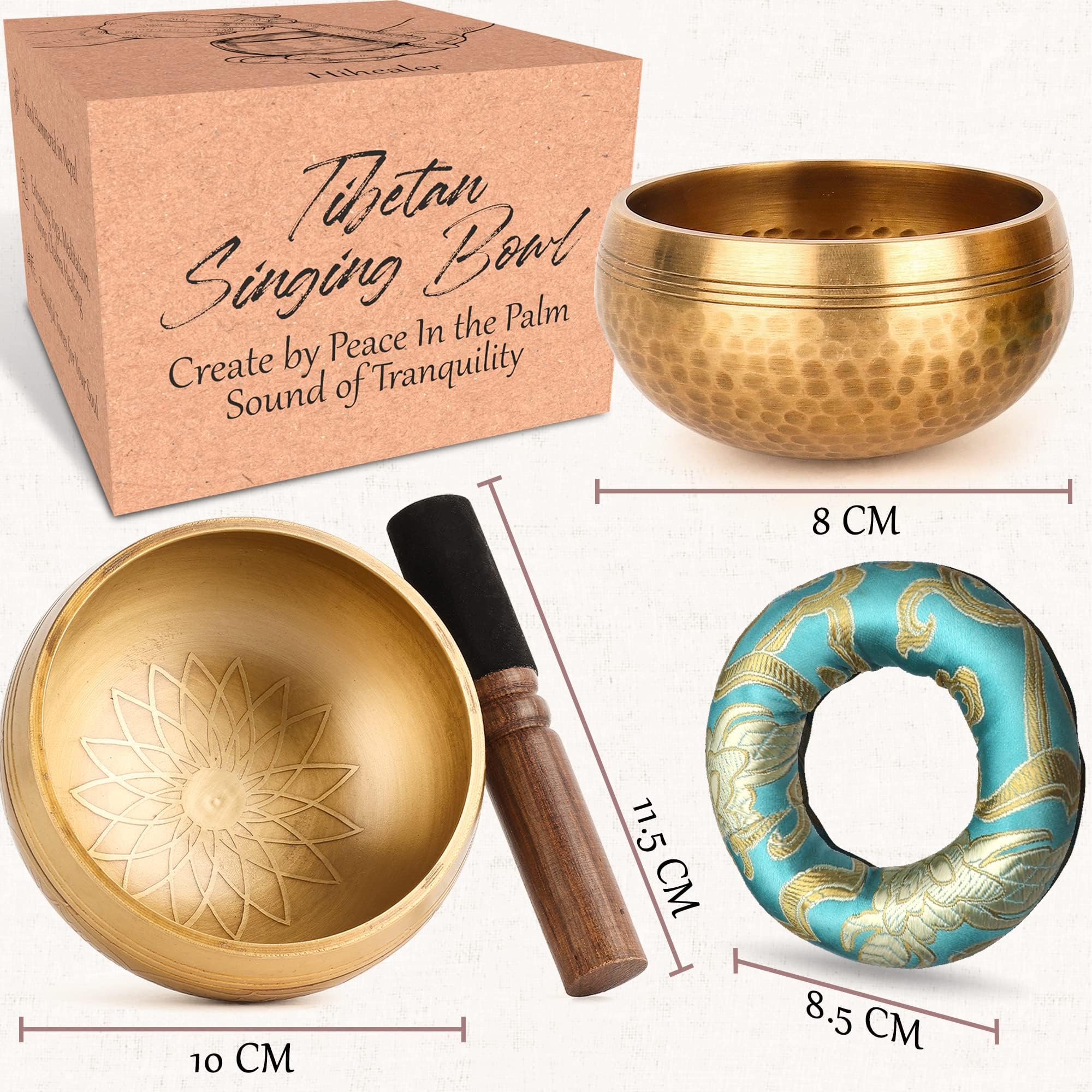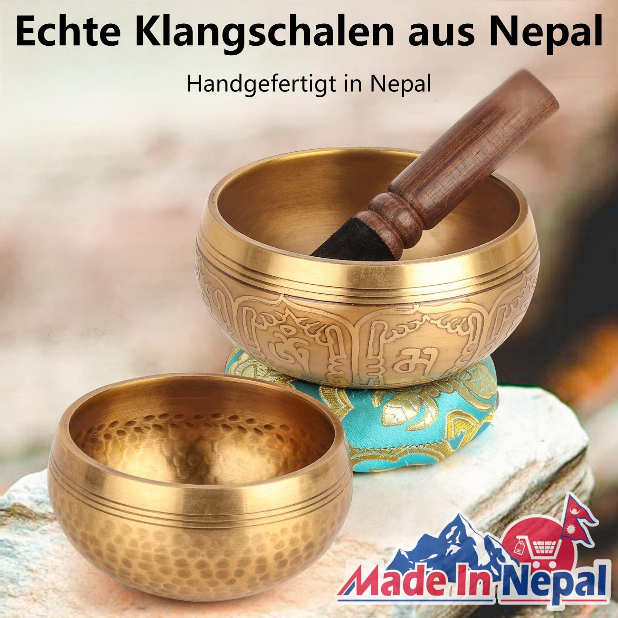 Tibetisches Klangschalen-Set, 100% handgefertigt in Nepal, Klangschale, Set für Meditation, Yoga, Chakra, Meditationsgeschenke, einzigartige Geschenke für Frauen, 2 Stück (10cm+8cm)