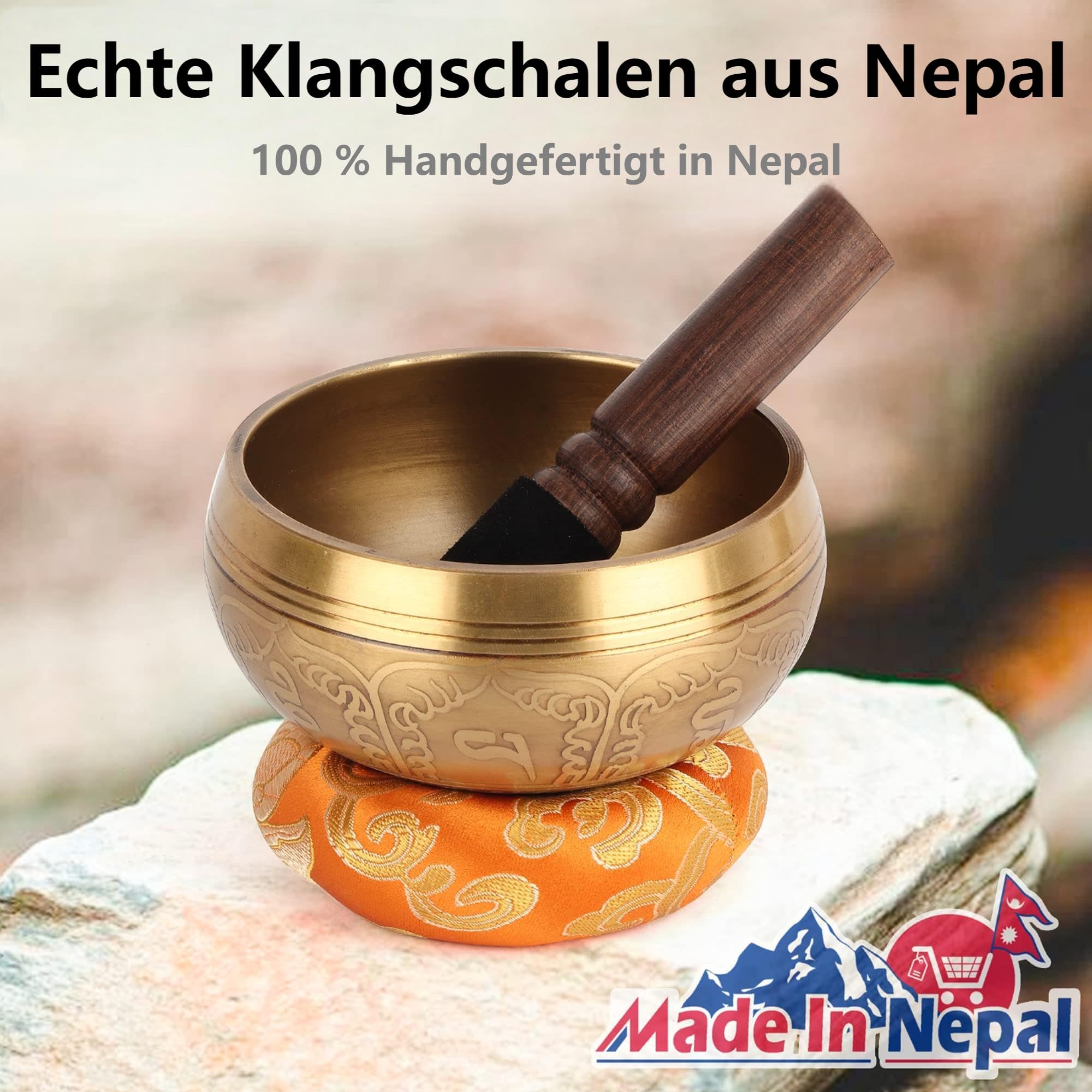 Tibetisches Klangschalen-Set – 100% handgehämmert in Nepal Klangschale für Meditation, Yoga, Chakra, Meditationszubehör, einzigartige Geschenke für Frauen, Männer (9.5 cm)